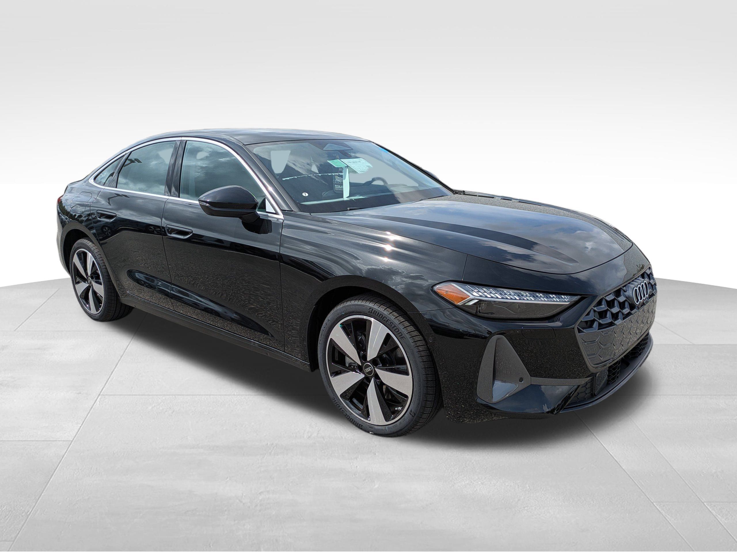 Mythos Black Metallic 2025 Audi All-new A5 Quattro Premium Plus quattro 7-Speed Automatic S tronic 2.0L 4-Cylinder TFSI 19"" Wheel Package, ABS brakes, Adaptive Cruise Assist, Alloy wheels, Audi Beam-Rings, Audi Guard All-Weather Mats, Audi Guard Cargo Mat, Black Warm Weather Package, Compass, Dynamic Interaction Light, Electronic Stability Control, Front Bucket Seats, Front Center Armrest, Front dual zone A/C, Head-Up Display, Heated door mirrors, Heated Front Bucket Seats, Heated front seats, Illuminated entry, LED Interior Lighting Pro Package, Low tire pressure warning, Manual Rear Side Window Sunshades, Park Assist Plus, Power Liftgate, Power passenger seat, Premium Plus, Remote keyless entry, Split folding rear seat, Top View Camera System, Traction control, Wheels: 19"" 5-Arm-Aero Design Bi-Color Finish.22/31 City/Highway MPG