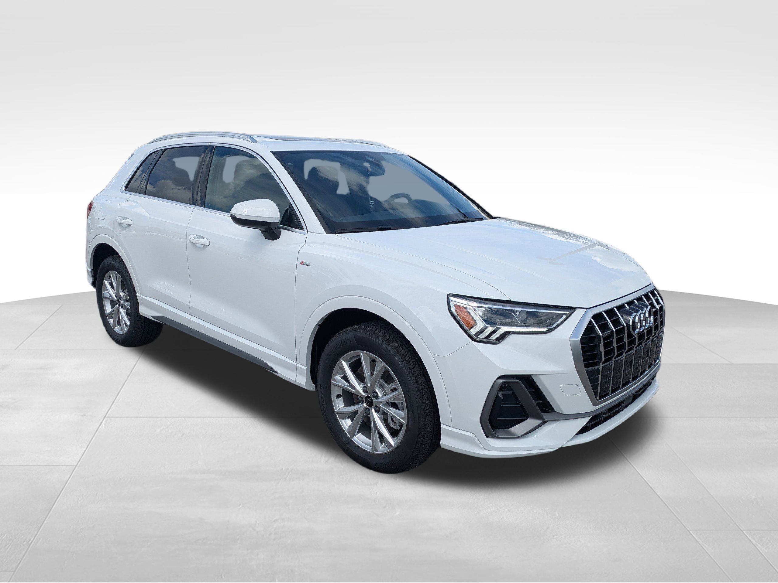 Arkona White 2025 Audi Q3 Premium S Line 45 TFSI quattro quattro 8-Speed Automatic with Tiptronic 2.0L 4-Cylinder TFSI Audi Advanced Key, Audi Beam-Rings, Audi Guard Protection Kit, Auto-Dimming Power-Folding Exterior Mirrors, Auto-Dimming Rear-View Mirror, Convenience Package, Driver Seat Memory, Garage Door Opener (HomeLink), LED Interior Lighting Package, Wheels: 18" 5-V-Spoke-S Design, Wireless Phone Charging Pad, 10 Speakers, 4-Wheel Disc Brakes, ABS brakes, Air Conditioning, Alloy wheels, AM/FM radio, Audi smartphone interface (Apple CarPlay/Android Auto), Auto High-beam Headlights, Automatic temperature control, Brake assist, Bumpers: body-color, Delay-off headlights, Driver door bin, Driver vanity mirror, Dual front impact airbags, Dual front side impact airbags, Electronic Stability Control, Emergency communication system: Audi connect CARE, Exterior Parking Camera Rear, Four wheel independent suspension, Front anti-roll bar, Front Bucket Seats, Front Center Armrest, Front dual zone A/C, Front fog lights, Front reading lights, Fully automatic headlights, Heated door mirrors, Heated Front Bucket Seats, Heated front seats, Illuminated entry, Knee airbag, Leather Seating Surfaces, Leather Shift Knob, Leather steering wheel, Low tire pressure warning, Occupant sensing airbag, Outside temperature display, Overhead airbag, Overhead console, Panic alarm, Passenger door bin, Passenger vanity mirror, Power door mirrors, Power driver seat, Power Liftgate, Power moonroof: Panoramic, Power passenger seat, Power steering, Power windows, Radio data system, Radio: Audi Sound System, Rain sensing wipers, Rear air conditioning, Rear anti-roll bar, Rear reading lights, Rear seat center armrest, Rear window defroster, Rear window wiper, Remote keyless entry, Speed control, Speed-sensing steering, Split folding rear seat, Spoiler, Steering wheel mounted audio controls, Tachometer, Telescoping steering wheel, Tilt steering wheel, Traction control, Trip computer, Turn signal indicator mirrors, Variably intermittent wipers, CLEAN CARFAX, Audi Advanced Key, Audi Beam-Rings, Audi Guard Protection Kit, Auto-Dimming Power-Folding Exterior Mirrors, Auto-Dimming Rear-View Mirror, Convenience Package, Driver Seat Memory, Garage Door Opener (HomeLink), LED Interior Lighting Package, Wheels: 18" 5-V-Spoke-S Design, Wireless Phone Charging Pad.20/28 City/Highway MPG