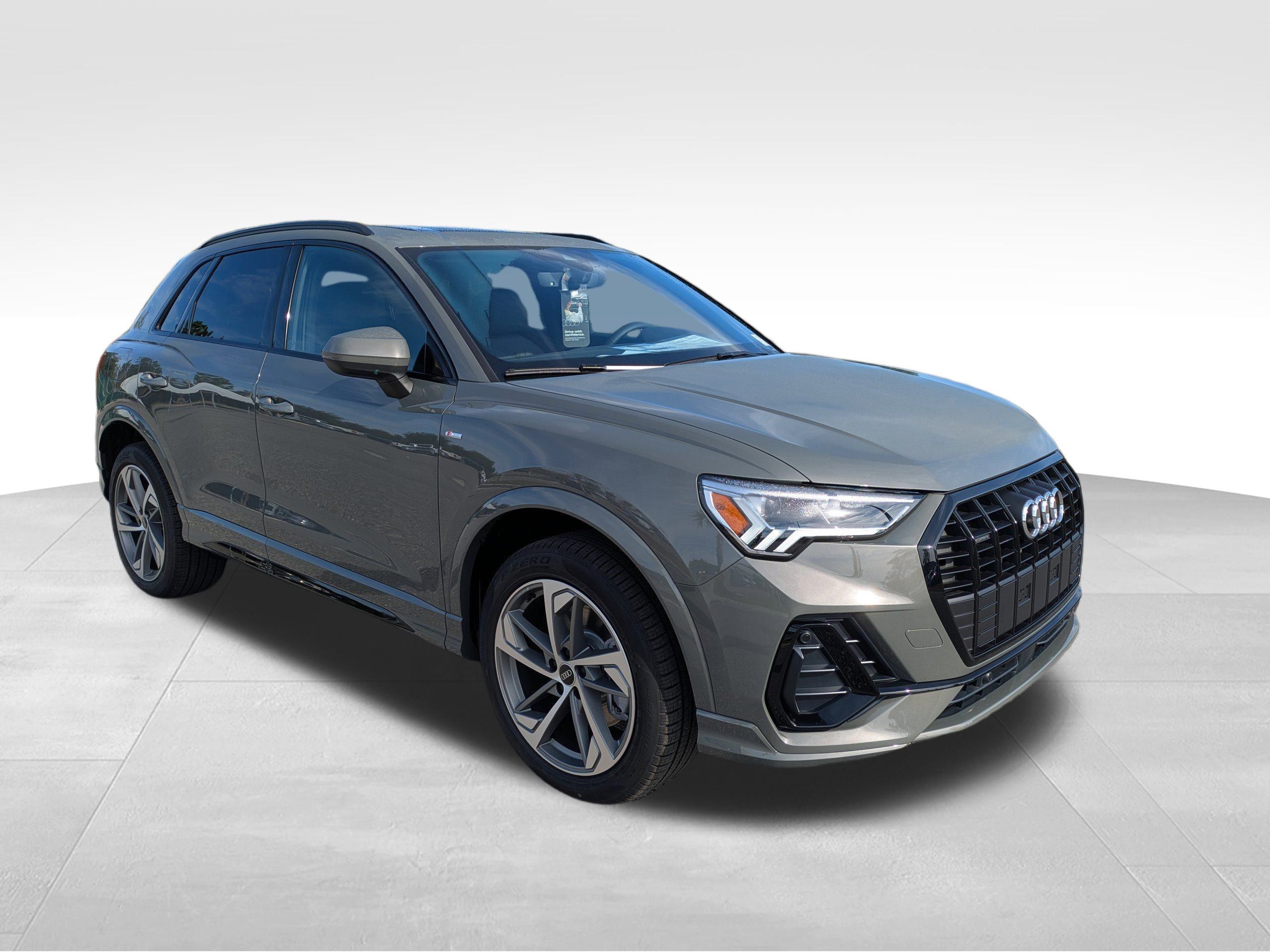 Chronos Gray Metallic 2025 Audi Q3 Premium S Line quattro quattro 8-Speed Automatic with Tiptronic 2.0L 4-Cylinder TFSI 10 Speakers, 4-Wheel Disc Brakes, ABS brakes, Air Conditioning, Alloy wheels, AM/FM radio, Audi smartphone interface (Apple CarPlay/Android Auto), Auto High-beam Headlights, Automatic temperature control, Brake assist, Bumpers: body-color, Delay-off headlights, Driver door bin, Driver vanity mirror, Dual front impact airbags, Dual front side impact airbags, Electronic Stability Control, Emergency communication system: Audi connect CARE, Exterior Parking Camera Rear, Four wheel independent suspension, Front anti-roll bar, Front Bucket Seats, Front Center Armrest, Front dual zone A/C, Front fog lights, Front reading lights, Fully automatic headlights, Heated door mirrors, Heated Front Bucket Seats, Heated front seats, Illuminated entry, Knee airbag, Leather Seating Surfaces, Leather Shift Knob, Leather steering wheel, Low tire pressure warning, Occupant sensing airbag, Outside temperature display, Overhead airbag, Overhead console, Panic alarm, Passenger door bin, Passenger vanity mirror, Power door mirrors, Power driver seat, Power Liftgate, Power moonroof: Panoramic, Power passenger seat, Power steering, Power windows, Radio data system, Radio: Audi Sound System, Rain sensing wipers, Rear air conditioning, Rear anti-roll bar, Rear reading lights, Rear seat center armrest, Rear window defroster, Rear window wiper, Remote keyless entry, Speed control, Speed-sensing steering, Split folding rear seat, Spoiler, Steering wheel mounted audio controls, Tachometer, Telescoping steering wheel, Tilt steering wheel, Traction control, Trip computer, Turn signal indicator mirrors, Variably intermittent wipers, Wheels: 18"" 5-V-Spoke-S Design, CLEAN CARFAX.20/28 City/Highway MPG