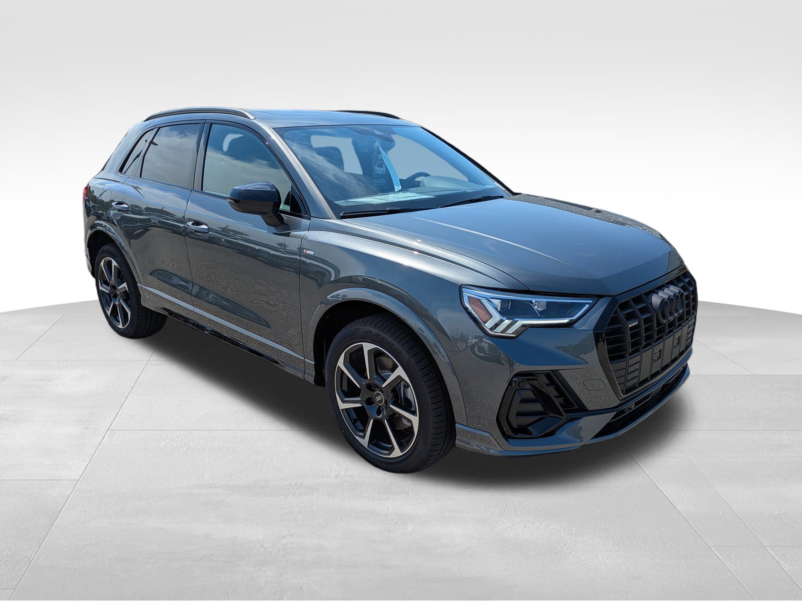 Daytona Gray Pearl Effect 2025 Audi Q3 Premium Plus S Line 45 TFSI quattro quattro 8-Speed Automatic with Tiptronic 2.0L 4-Cylinder TFSI Audi Advanced Key, Audi Beam-Rings, Audi Guard Protection Kit, Audi Guard Wheel Lock Kit, Auto-Dimming Power-Folding Exterior Mirrors, Auto-Dimming Rear-View Mirror, Black Exterior Mirrors, Black Optic Plus Package, Black Roof Rails, Carbon Inlays, Convenience Package, Driver Seat Memory, Garage Door Opener (HomeLink), LED Interior Lighting Package, LED Interior Lighting Plus Package, Premium Plus Package, Stainless Steel Pedal Caps, Top View Camera System, Wheels: 19"" 7-Spoke-Rotor-Design, Wireless Phone Charging Pad, 4-Wheel Disc Brakes, ABS brakes, Air Conditioning, Alloy wheels, AM/FM radio, Audi smartphone interface (Apple CarPlay/Android Auto), Auto High-beam Headlights, Automatic temperature control, Brake assist, Bumpers: body-color, Delay-off headlights, Driver door bin, Driver vanity mirror, Dual front impact airbags, Dual front side impact airbags, Electronic Stability Control, Emergency communication system: Audi connect CARE, Exterior Parking Camera Rear, Four wheel independent suspension, Front anti-roll bar, Front Bucket Seats, Front Center Armrest, Front dual zone A/C, Front fog lights, Front reading lights, Fully automatic headlights, Heated door mirrors, Heated Front Bucket Seats, Heated front seats, Illuminated entry, Knee airbag, Leather Seating Surfaces, Leather Shift Knob, Leather steering wheel, Low tire pressure warning, Occupant sensing airbag, Outside temperature display, Overhead airbag, Overhead console, Panic alarm, Passenger door bin, Passenger vanity mirror, Power door mirrors, Power driver seat, Power Liftgate, Power moonroof: Panoramic, Power passenger seat, Power steering, Power windows, Radio data system, Rain sensing wipers, Rear air conditioning, Rear anti-roll bar, Rear reading lights, Rear seat center armrest, Rear window defroster, Rear window wiper, Remote keyless entry, Speed control, Speed-sensing steering, Split folding rear seat, Spoiler, Steering wheel mounted audio controls, Tachometer, Telescoping steering wheel, Tilt steering wheel, Traction control, Trip computer, Turn signal indicator mirrors, Variably intermittent wipers, CLEAN CARFAX, Audi Advanced Key, Audi Beam-Rings, Audi Guard Protection Kit, Audi Guard Wheel Lock Kit, Auto-Dimming Power-Folding Exterior Mirrors, Auto-Dimming Rear-View Mirror, Black Exterior Mirrors, Black Optic Plus Package, Black Roof Rails, Carbon Inlays, Convenience Package, Driver Seat Memory, Garage Door Opener (HomeLink), LED Interior Lighting Package, LED Interior Lighting Plus Package, Premium Plus Package, Stainless Steel Pedal Caps, Top View Camera System, Wheels: 19"" 7-Spoke-Rotor-Design, Wireless Phone Charging Pad.20/28 City/Highway MPG