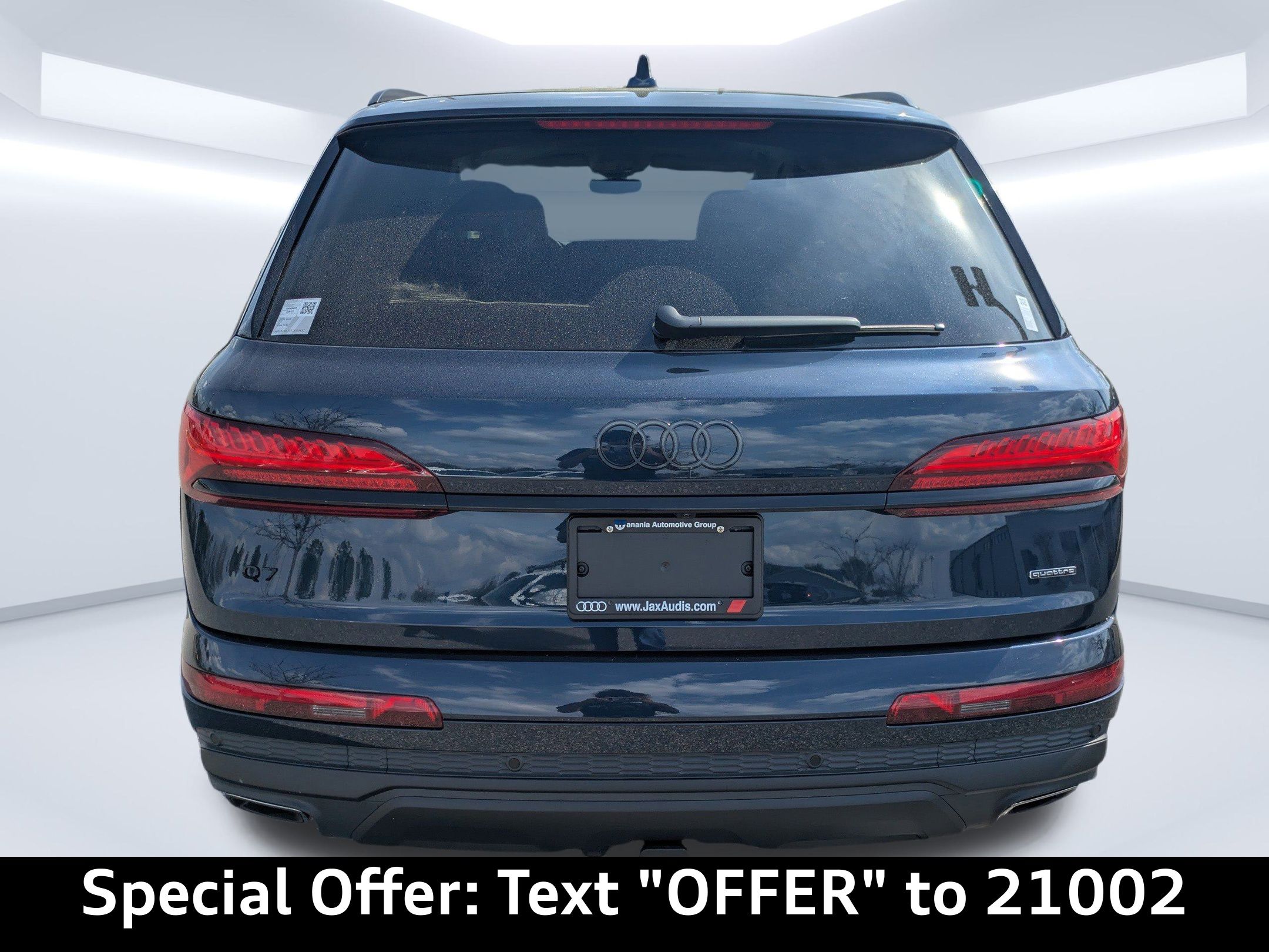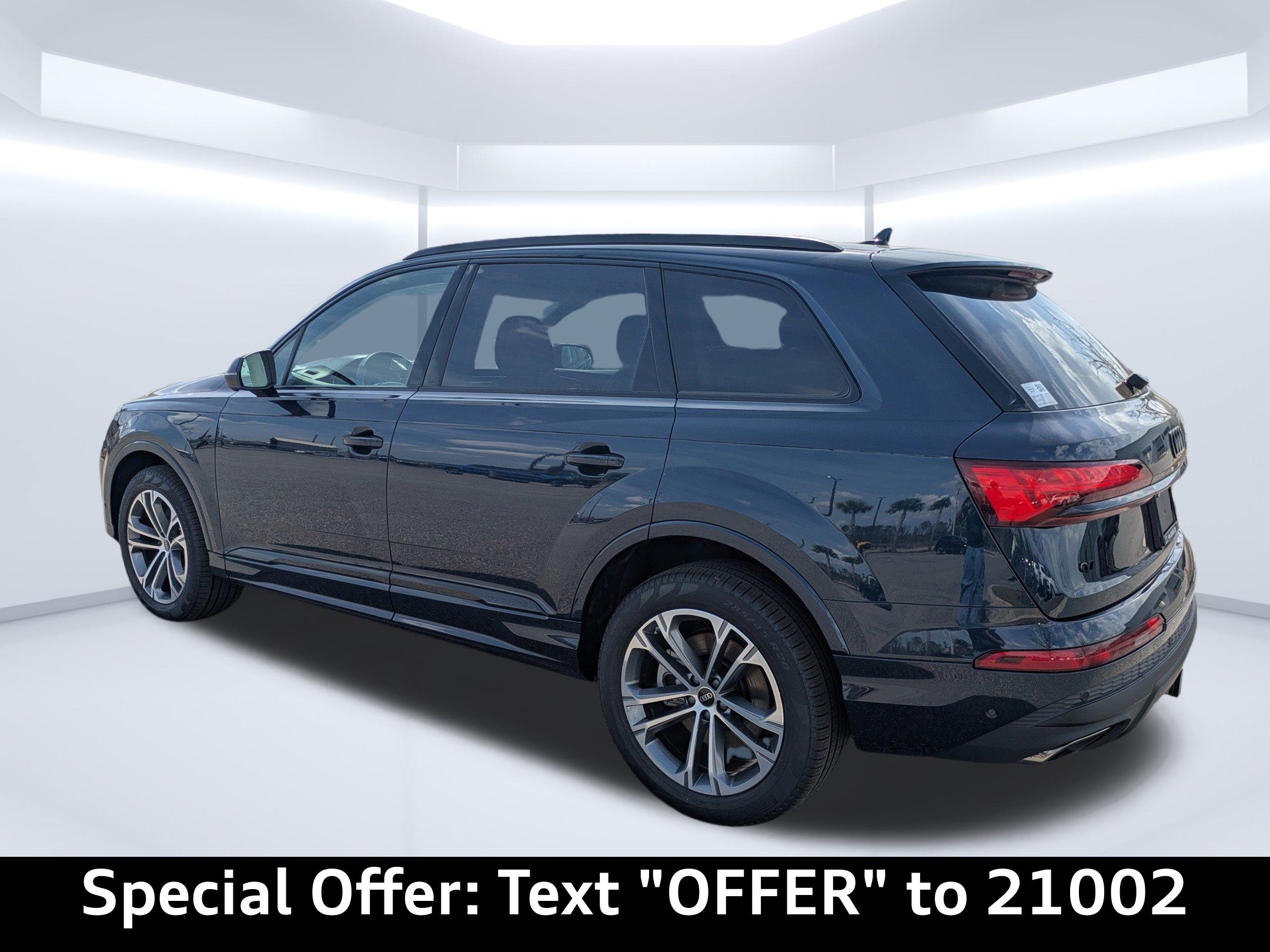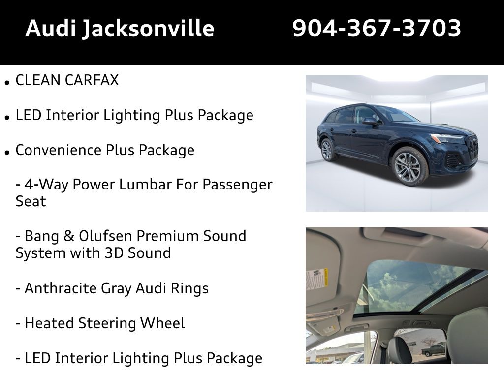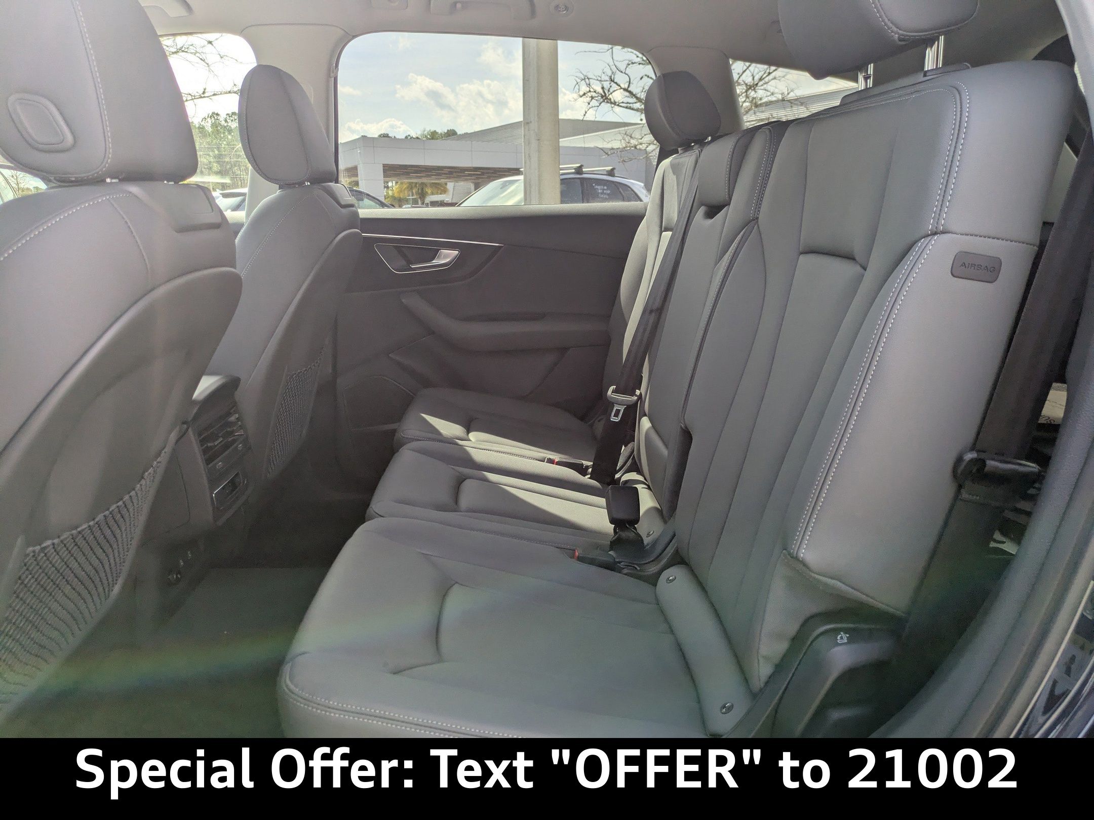Welcome to the future of luxury driving with the 2026 Audi Q7 Premium 45 TFSI quattro tiptronic, available at Audi Jacksonville. This sophisticated SUV is designed to enhance every journey, whether you're navigating the bustling streets of Jacksonville or embarking on a weekend getaway to the serene beaches of Atlantic Beach. Experience the power of a 2.0-liter I-4 engine with 261 horsepower, seamlessly paired with an 8-speed automatic transmission. The quattro all-wheel drive ensures confident handling on both sunny coastal drives and unexpected rain-soaked roads. The adaptive cruise control with lane guidance makes long highway commutes a breeze, while the hill descent control is perfect for those adventurous treks into nature. Whether you're heading to a business meeting downtown or a family outing, the Q7's performance will keep you in command. Stay connected and entertained with the Audi MMI Navigation plus system, featuring wireless Apple CarPlay and Android Auto for seamless smartphone integration. The Audi virtual cockpit plus with a 12.3-inch gauge cluster display provides all the information you need at a glance. Enjoy your favorite tunes through the Audi Sound System's 10 speakers, while the Bluetooth handsfree connectivity keeps you safely connected. With over-the-air updates, your Q7 is always at the cutting edge of technology. The 2026 Audi Q7 is equipped with an array of advanced safety features including Audi pre sense basic and front collision mitigation, and Audi side assist blind spot warning. The rearview camera and Audi parking system plus ensure easy parking in tight urban spaces. Inside, indulge in the luxury of leather seating surfaces with heated front bucket seats and a panoramic sunroof that fills the cabin with natural light. Dual-zone climate control and rear air conditioning controls ensure comfort for all passengers. Crafted for the modern family, the Q7 offers seating for seven with a versatile 50/50 folding third-row seat. The power liftgate provides easy access to the spacious cargo area, perfect for loading up gear for a day at the beach or a weekend camping trip. The refrigerated glove box keeps your refreshments cool, while ample storage options make organizing your essentials a breeze. Don't miss out on the opportunity to experience the elegance and innovation of the 2026 Audi Q7. Contact Audi Jacksonville today to schedule your test drive. For a seamless purchase experience, start your Credit Application or discover the value of your current vehicle with our Value Your Trade tool. Visit us at 11401 Atlantic Blvd, Jacksonville, FL 32225 and let the Audi Q7 redefine your journey.2026 Audi Q7 Premium 45 TFSI quattro tiptronic