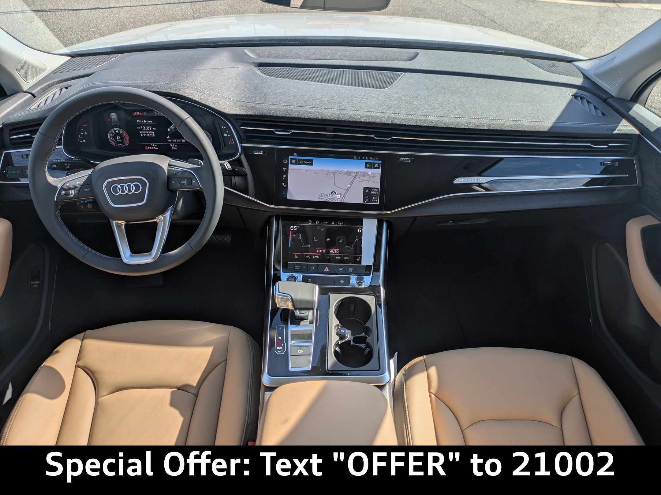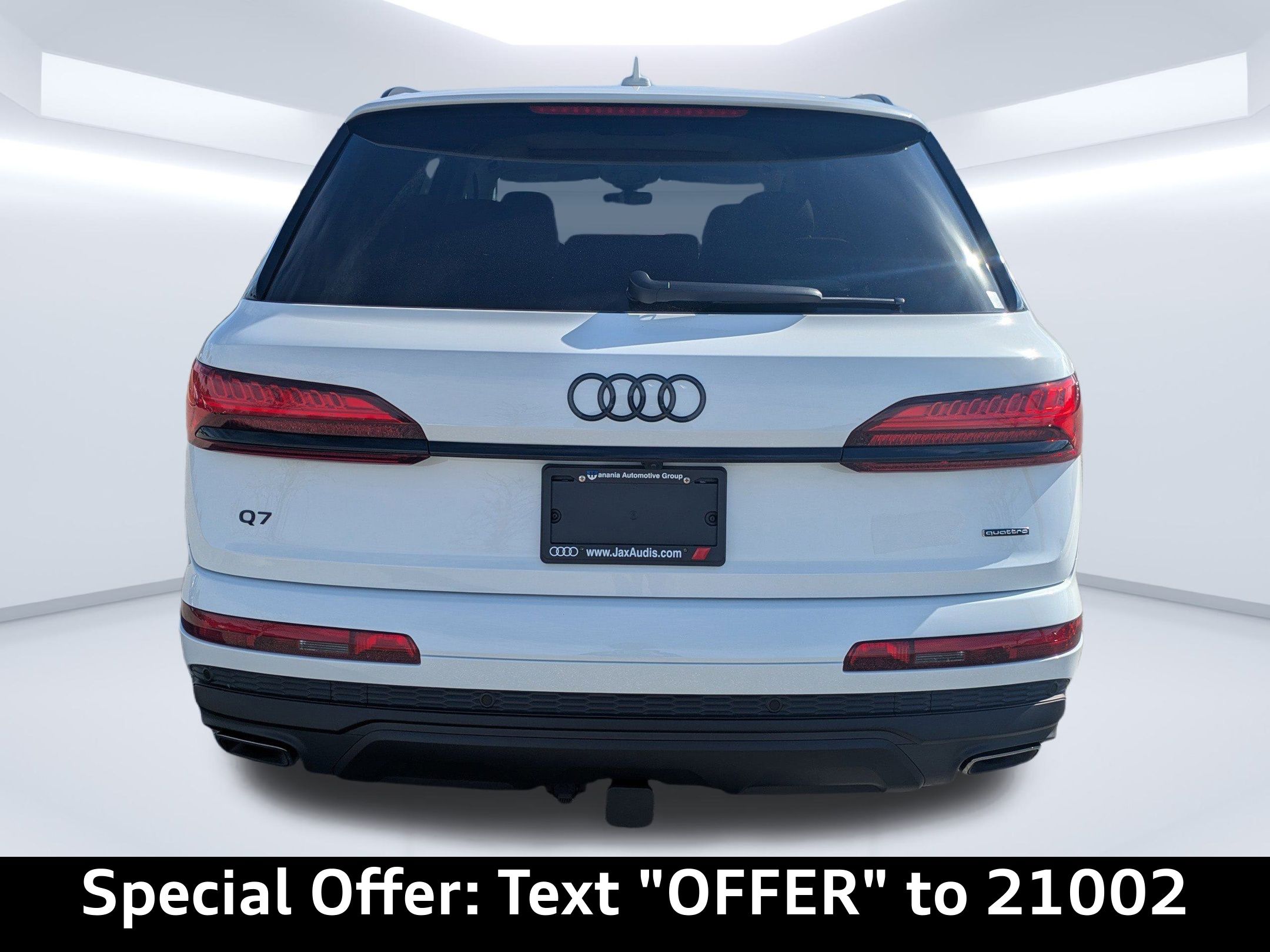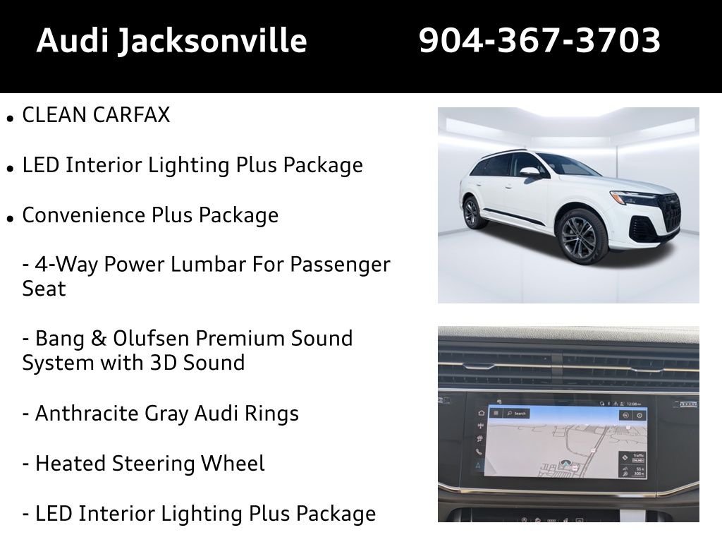 Welcome to a new era of driving excellence with the 2026 Audi Q7 Premium 55 TFSI quattro tiptronic. Designed for the vibrant, dynamic lifestyle of Jacksonville residents, this luxury SUV embodies sophistication and performance, making every commute, family outing, or weekend adventure a memorable experience. Equipped with a 3L V-6 gasoline direct injection engine boasting 335HP, this powerhouse is paired with an 8-speed automatic transmission and Audi's legendary quattro all-wheel drive. Whether you're navigating the bustling streets of downtown Jacksonville or cruising along the scenic routes of Amelia Island, the adaptive cruise control and Audi drive select ensure a smooth, responsive drive tailored to your preferences. The brake actuated limited slip differential and independent suspension deliver precision handling and stability, while the auto stop-start engine optimizes fuel efficiency, making it both exhilarating and practical. Stay connected and entertained with the Audi MMI Navigation plus with Touch Response, featuring a 10.1-inch touchscreen and voice-activated controls. Enjoy seamless integration with wireless Apple CarPlay & Android Auto, turning your vehicle into a mobile command center. The Audi virtual cockpit plus provides a customizable digital display, keeping you informed with real-time traffic updates and navigation assistance. For the tech-savvy, the Audi connect NAV and PLUS with App store offers a mobile hotspot, ensuring you stay connected on the go. Safety is paramount, and the Q7 is equipped with an array of advanced features like Audi pre sense basic and front forward collision mitigation, Audi side assist blind spot warning, and lane departure warning. With 8 airbags, including SIDEGUARD curtain airbags across all rows, and a rearview camera, your peace of mind is assured. The auto-dimming mirrors, rain-sensing wipers, and LED Matrix Design headlights enhance visibility and comfort, while the heated front seats and tri-zone climate control ensure a pleasant journey for all passengers. With seating for seven, the Q7 is perfect for family outings to the Jacksonville Zoo or weekend getaways to the beaches of St. Augustine. The power fold into floor third-row seats and 40-20-40 folding second-row seats offer versatile cargo space for all your gear. Enjoy the view through the panoramic sunroof, and keep everyone comfortable with the rear climate control system and refrigerated glovebox. Don't miss the opportunity to own this exquisite vehicle. Visit Audi Jacksonville, conveniently located on Atlantic Blvd, to experience the 2026 Audi Q7 Premium 55 TFSI quattro tiptronic firsthand. Call us at 904-367-3700 to schedule your personalized test drive. Looking to upgrade? Use our Value Your Trade tool to get the best value for your current vehicle. Ready to make the Q7 yours? Start by completing our Credit Application today. Seize the moment and redefine your driving experience with the new Audi Q7. Whether it's daily commuting, family adventures, or embracing the open road, this SUV is your perfect partner.2026 Audi Q7 Premium 55 TFSI quattro tiptronic: Elevate Your Drive in Jacksonville