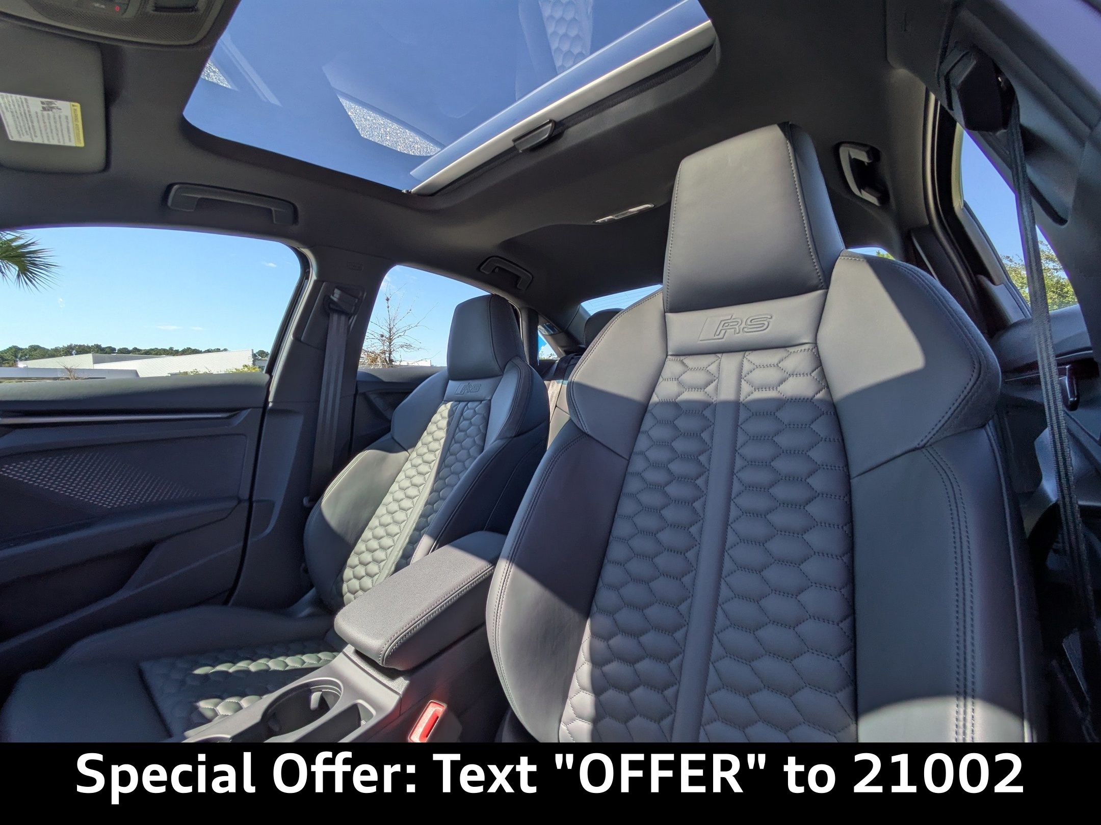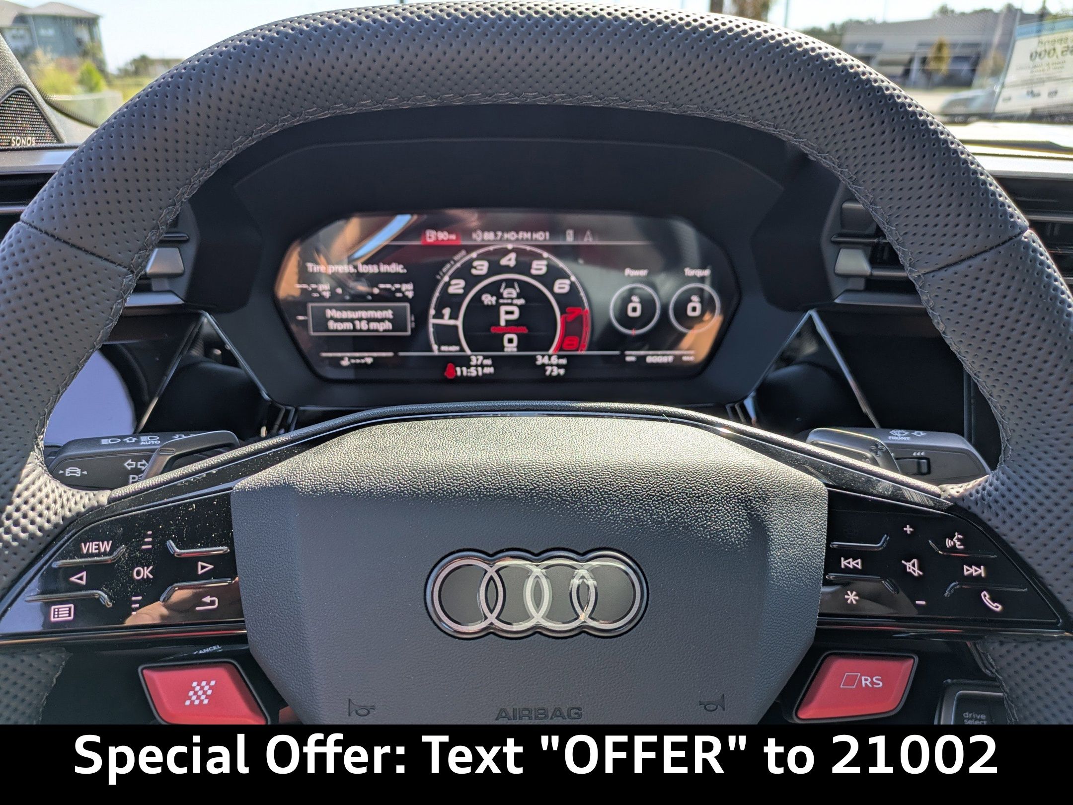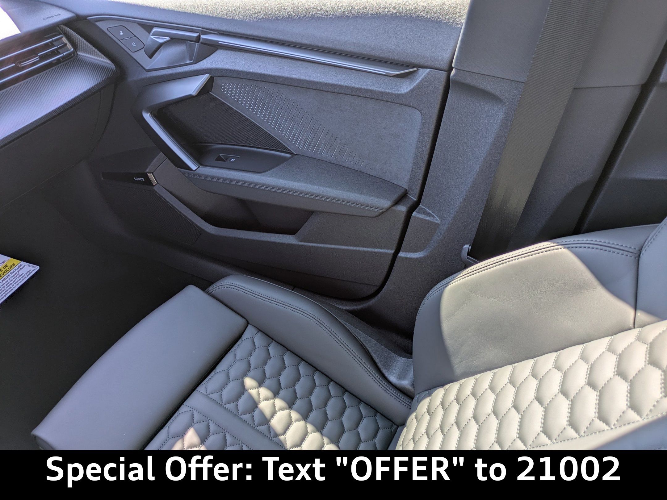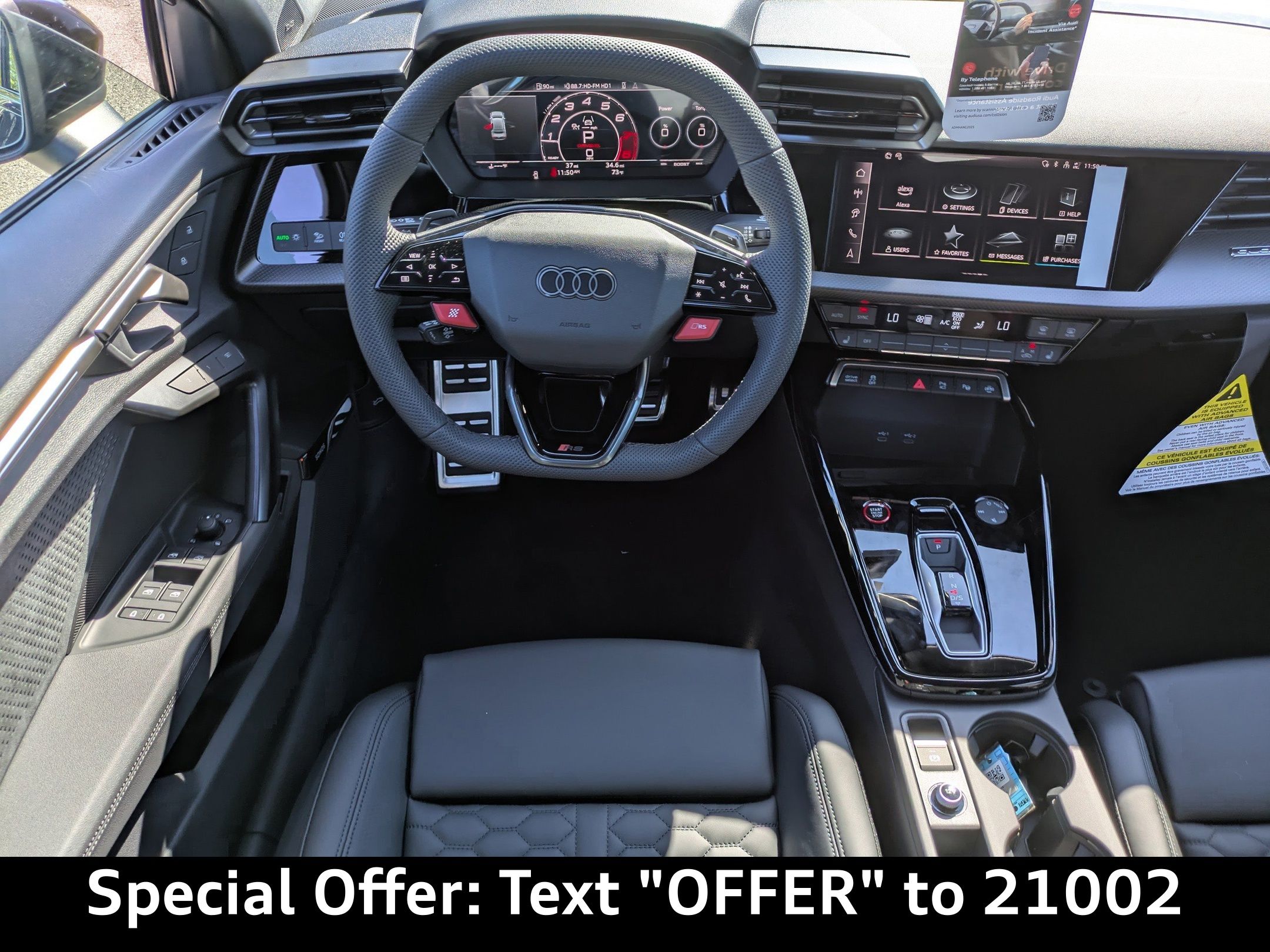 Welcome to the ultimate driving experience with the 2026 Audi RS 3 TFSI quattro S tronic, now available at Audi Jacksonville. Whether you're cruising through Jacksonville's vibrant streets or escaping to the serene beaches, this vehicle delivers unparalleled performance and style. Power through your daily commute with a 2.5L I-5 engine boasting 394 horsepower, seamlessly paired with a 7-Speed S Tronic Dual-Clutch Automatic Transmission. The full-time quattro All-Wheel Drive and adaptive suspension adapt effortlessly to Florida's diverse landscapes, ensuring a smooth ride on any terrain. Stay connected on every journey with the Audi Virtual Cockpit Plus, featuring a stunning 12.3-inch display that keeps essential information at your fingertips. As you navigate the bustling Jacksonville roads or plan a weekend getaway, the MMI Navigation Plus with touch response and real-time traffic updates ensures you're always on the right path. Enjoy crystal-clear audio through the SONOS Premium Sound System with 3D Sound, perfect for those long drives along the coast. Plus, the integration of Apple CarPlay and Android Auto keeps you seamlessly connected to your digital world. Safety is paramount in the 2026 Audi RS 3. Equipped with Audi pre sense basic and front collision mitigation, the vehicle offers peace of mind whether you're navigating crowded city streets or open highways. The blind spot monitor and rear cross traffic alert are invaluable for parking in busy areas like downtown Jacksonville. Inside, indulge in the luxury of Fine Nappa Leather seats with heated front sport seats. The dual-zone climate control system ensures you and your passengers enjoy personalized comfort, regardless of the Florida heat. Turn heads wherever you go with the mythos black metallic exterior, complemented by a striking black grille and Phantom Black Polished wheels. The sport exhaust system with black tips and red painted brake calipers add a sporty flair, while the power moonroof invites the Florida sunshine into your drive. The LED Matrix-design headlights ensure excellent visibility, day or night, making every journey a safe and stylish affair. The 2026 Audi RS 3 TFSI quattro S tronic isn't just a car—it's a statement. It's designed for those who value performance, luxury, and cutting-edge technology. Don't miss your chance to experience this remarkable vehicle. Visit Audi Jacksonville at 11401 Atlantic Blvd, Jacksonville, FL 32225, or call us at 904-367-3700 to schedule your test drive today. Ready to make it yours? Start by filling out our Credit Application or get a trade value on your current vehicle using our Value Your Trade tool. This thrilling ride won’t last long—seize the opportunity to own the road with the Audi RS 3.2026 Audi RS 3 TFSI quattro S tronic: Unleash the Road