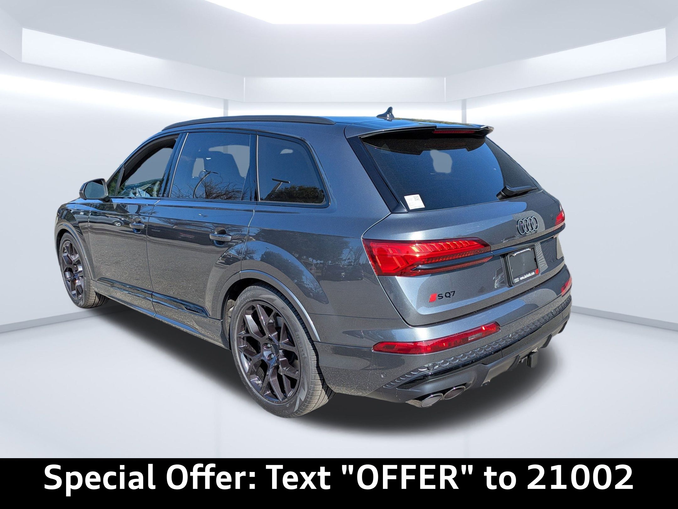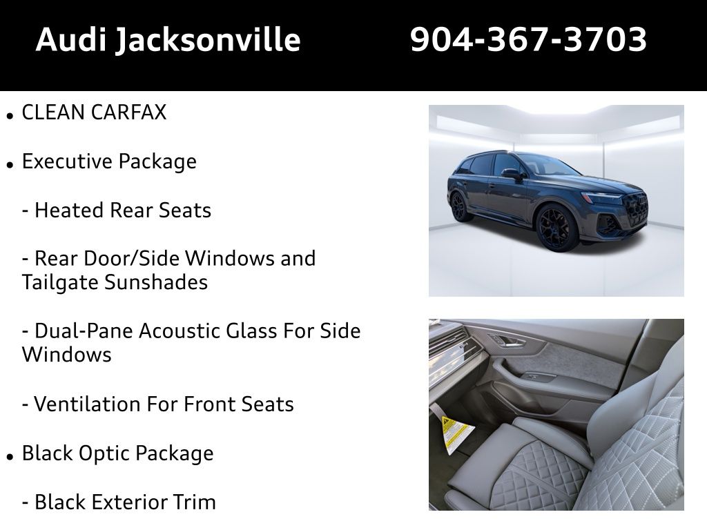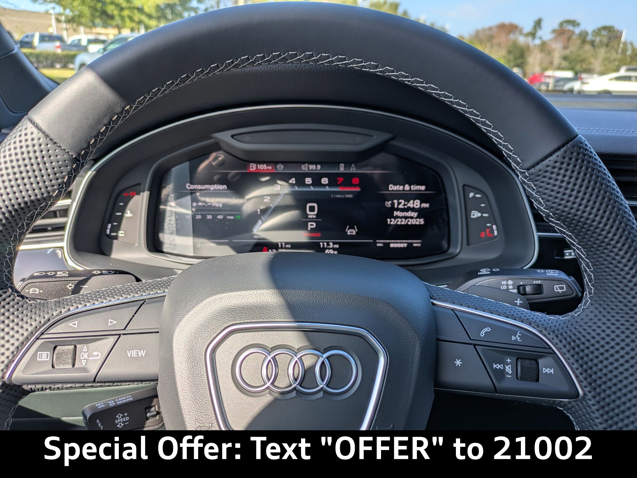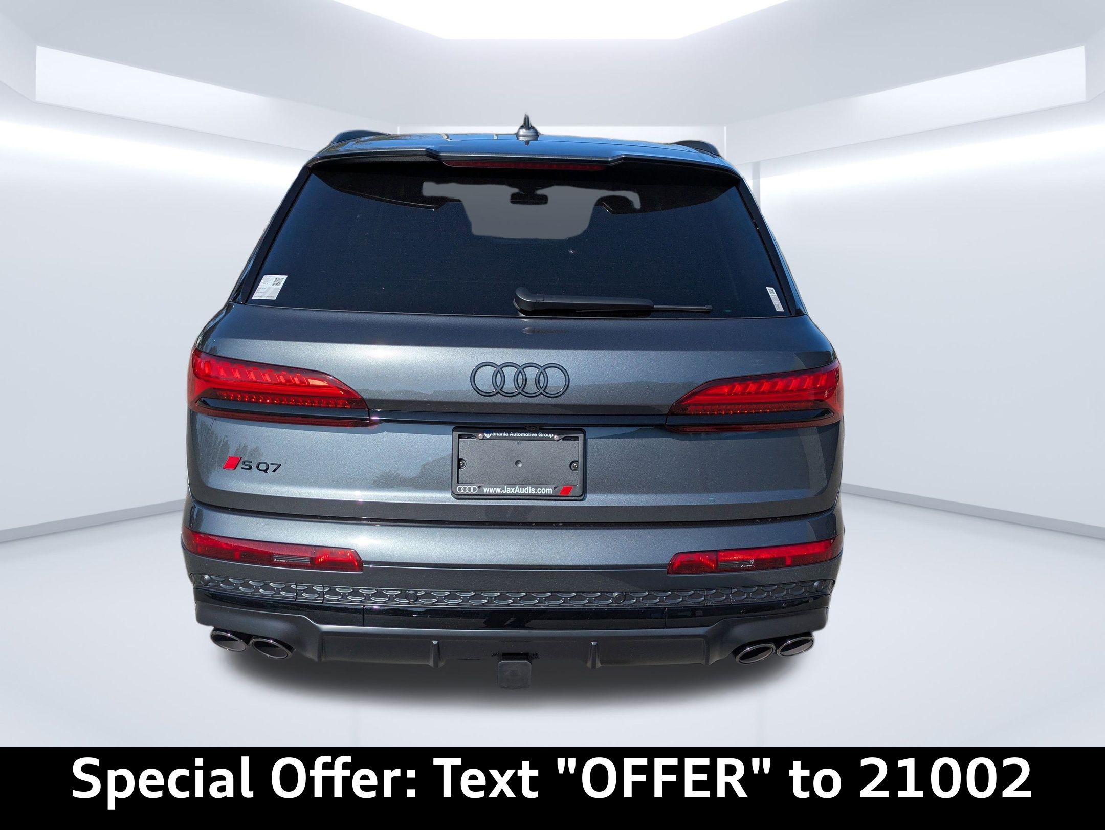 Experience the perfect blend of power, technology, and luxury with the 2026 Audi SQ7 Premium Plus TFSI quattro tiptronic—a vehicle meticulously crafted for discerning drivers in Jacksonville. Whether you're navigating the vibrant streets of Atlantic Beach or embarking on a family adventure to the serene shores of Ponte Vedra, the SQ7 is designed to enhance every journey. Beneath its sleek Daytona Gray Pearl Effect exterior, the SQ7 houses a formidable 4L V-8 twin-turbo engine, delivering an exhilarating 500 horsepower. This powerhouse, paired with Audi's legendary quattro all-wheel drive, ensures you command the road with confidence, whether cruising down I-95 or exploring Florida’s scenic byways. The adaptive suspension and auto-leveling features promise a smooth, responsive ride, adapting seamlessly to any terrain you encounter. Stay connected and entertained with the cutting-edge technology of the SQ7. The Audi virtual cockpit plus presents a stunning 12.3-inch digital display, keeping all essential information at your fingertips. Seamlessly integrate your digital life with wireless Apple CarPlay and Android Auto, while the Bang & Olufsen 3D sound system with 19 speakers transforms your cabin into a concert hall—perfect for long drives to Jacksonville’s cultural events. Safety is paramount with advanced systems like Audi pre sense basic and front, adaptive cruise assist with lane guidance, and Audi side assist blind spot warning. These features harmonize to keep you and your loved ones safe, whether navigating city traffic or embarking on family adventures. Inside, the luxurious Valcona leather seats with heated and ventilated options ensure comfort in any weather. The three-zone climate control provides personalized comfort for every passenger, making the SQ7 a haven of relaxation. With seating for up to seven, the SQ7 is ideal for families or those who love to entertain. The power fold into floor third-row seat and 40-20-40 folding second-row seats offer versatile cargo space, perfect for hauling beach gear or treasures from the St. Johns Town Center. The panoramic sunroof bathes the cabin in natural light, enhancing the spacious feel and connecting you with the beautiful Florida skies. Seize the opportunity to own a piece of Audi excellence. Visit Audi Jacksonville at 11401 Atlantic Blvd, Jacksonville, FL 32225, or call us at 904-367-3700 to schedule your test drive. Ready to take the next step? Begin with our Credit Application or find out how much your current vehicle is worth with our Value Your Trade tool. Don’t miss your chance to experience the luxury, performance, and innovation of the 2026 Audi SQ7 Premium Plus.2026 Audi SQ7 Premium Plus TFSI quattro tiptronic: Elevate Your Drive in Jacksonville