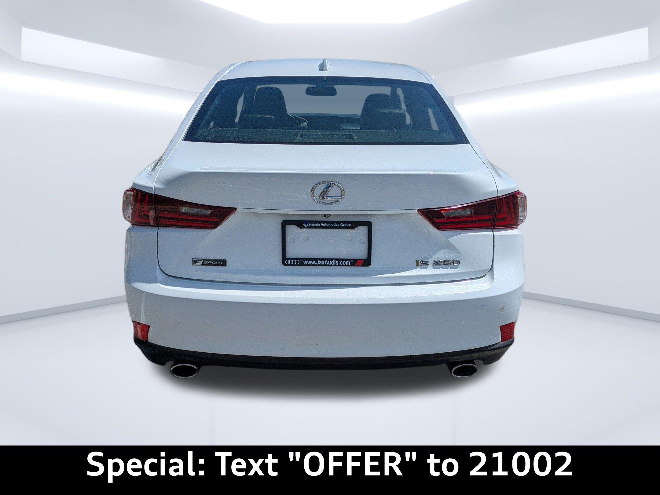 Imagine yourself cruising down A1A in Neptune Beach, the ocean breeze gently tousling your hair as you head to a beachfront brunch. The 2015 Lexus IS 250 Crafted Line isn't just a car; it's an extension of your sophisticated lifestyle, perfectly suited for navigating Jacksonville's vibrant scene. This sleek sedan blends performance and luxury, making every drive an experience. The 2015 Lexus IS 250 Crafted Line delivers a refined driving experience powered by its 2.5L V-6 gasoline direct injection engine with DOHC and VVT-i variable valve control, producing 204HP. Paired with a smooth 6-speed automatic transmission and Rear Wheel Drive, this sedan offers a balanced ride, whether you're commuting from Nocatee to downtown or enjoying a weekend drive. The selectable mode transmission allows you to tailor your driving experience to your preference. The independent front and rear suspension ensures a comfortable and controlled ride, absorbing bumps and providing confident handling on any road. Stay connected and entertained in the 2015 Lexus IS 250 Crafted Line with its advanced technology features. The integrated navigation system with voice activation helps you effortlessly navigate Jacksonville's roadways. Enjoy your favorite music through the Lexus Premium Audio System, enhanced by Bluetooth wireless audio streaming. The steering wheel mounted audio controls allow you to adjust the volume or change tracks without taking your hands off the wheel. The outside temperature display keeps you informed of the conditions, while the 7 inch primary display offers clear and intuitive access to your vehicle's information. Step inside the 2015 Lexus IS 250 Crafted Line and experience a world of comfort and sophistication. The NuLuxe leatherette front seat upholstery in Black/Garnet offers a luxurious feel, while the power driver and passenger seats with power reclining, cushion tilt, fore/aft control and height adjustable control allow you to find the perfect driving position. The dual-zone front climate control ensures optimal comfort for both driver and passenger. Enjoy the open sky with the power moonroof, and easily access the cargo area with the power cargo area access release. Other convenience features include remote keyless entry, cruise control with steering wheel mounted controls, and power windows. The heated door mirrors ensure clear visibility in colder weather. The 2015 Lexus IS 250 Crafted Line prioritizes your safety with a comprehensive suite of features. The ABS brakes and brake assist system provide confident stopping power, while the dual front impact airbags and dual front side impact airbags offer enhanced protection in the event of a collision. The rear back-up camera w/dynamic gridlines makes parking and maneuvering in tight spaces easier. The blind spot monitor enhances awareness of your surroundings, and the emergency SOS capable Safety Connect vehicle integrated emergency SOS system provides added peace of mind. The 2015 Lexus IS 250 Crafted Line exudes sophistication with its Ultra White exterior and distinctive design. The black grille with chrome surround adds a touch of elegance, while the 17 x 7.5-inch front and rear black aluminum wheels enhance its sporty appeal. The body-colored front and rear bumpers create a seamless look, and the LED front fog lights provide enhanced visibility. The first-row sunroof lets you enjoy the Florida sunshine, while the light tinted windows provide added privacy. Here are some standout features of this 2015 Lexus IS 250 Crafted Line: Getting to Audi Jacksonville from Ponte Vedra Beach is a breeze! We're conveniently located at 11401 Atlantic Blvd, Jacksonville, FL 32225. Stop by Audi Jacksonville today to experience the 2015 Lexus IS 250 Crafted Line for yourself. Call us at (904) 367-3700 to schedule a test drive or discuss financing options. You can also apply for credit or value your trade online. We look forward to welcoming you! Build Codes: NV | CAMERA | SE | STDWL | BLIND | GLOVE | MIROR1 | STDTR | MIROR3 | STDST | HSTEER | LEDH | BD | WL2015 Lexus IS 250 Crafted Line: Elegance in Motion