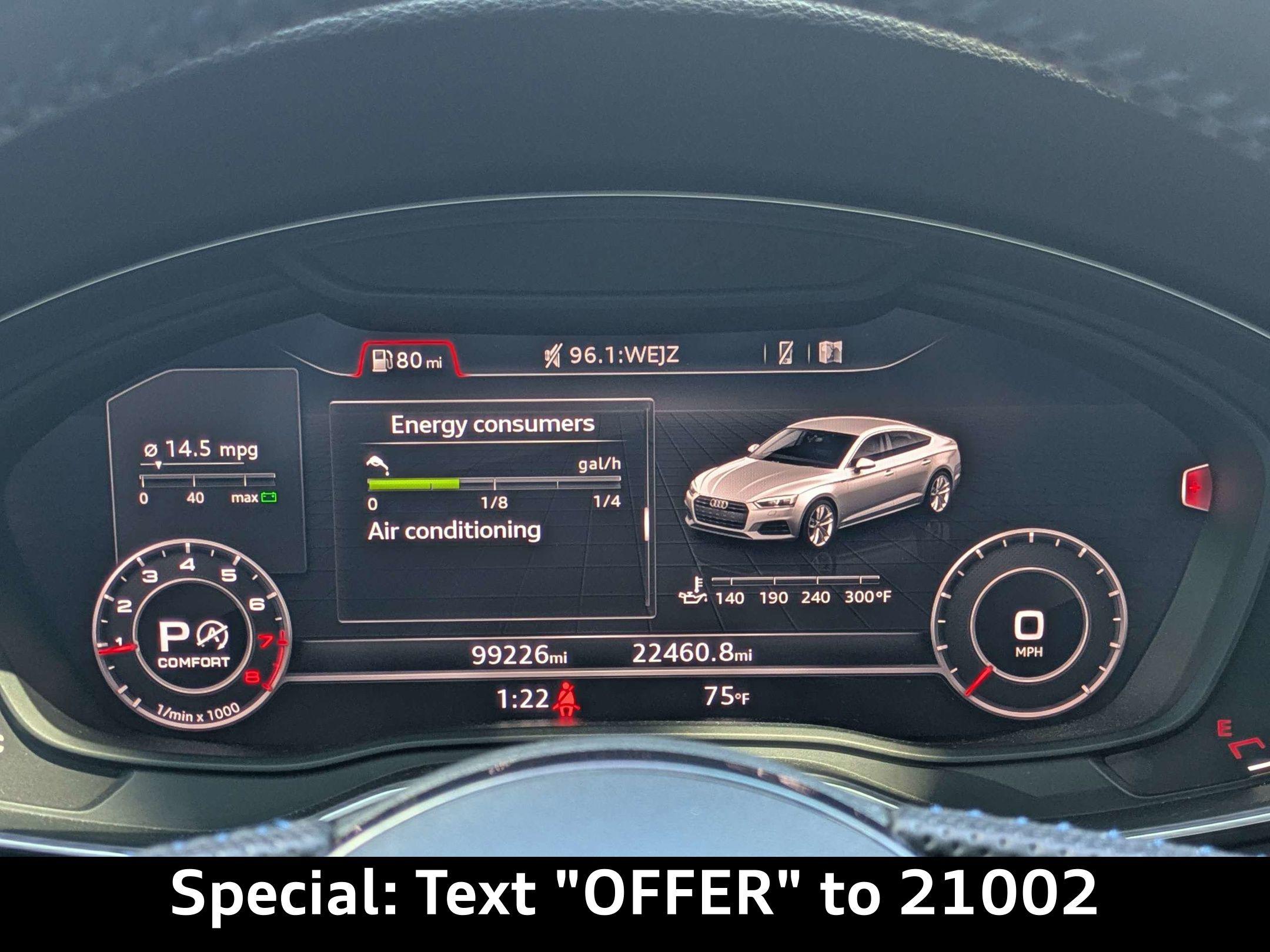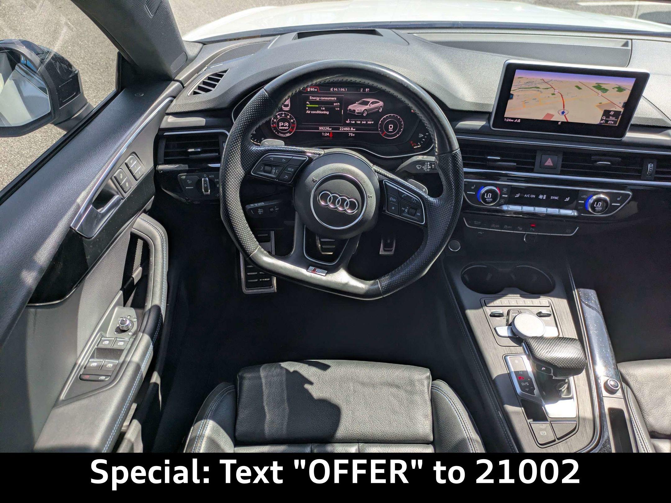Imagine cruising down A1A, the sun glinting off the Glacier White Metallic finish of your Audi A5, as you head to a weekend brunch in Neptune Beach. This 2019 Audi A5 45 Premium isn't just a car; it's a statement of refined taste and a gateway to the vibrant Jacksonville lifestyle. The heart of this Audi A5 is a potent 2.0L TFSI 4-Cylinder Engine, delivering a thrilling 248 horsepower. Paired with the responsive 7-Speed S Tronic Dual-Clutch Automatic Transmission and legendary All-Wheel Drive, you'll experience confident handling in any condition. Whether you're navigating a sudden downpour or enjoying a spirited drive along the coast, the A5's advanced engineering ensures a smooth and engaging ride. The Audi drive select system allows you to tailor the driving experience to your preferences, from efficient commuting to dynamic performance. Its robust iron engine block and efficient engine cooler ensure reliability, while the sport suspension adds a touch of athleticism to your daily drive. Stay connected and entertained with the Audi A5's cutting-edge technology. The Audi MMI Navigation Plus with MMI Touch puts intuitive navigation at your fingertips, guiding you to your favorite San Jose restaurants or weekend getaways with ease. Seamlessly integrate your smartphone with Apple CarPlay and Android Auto, allowing you to stream your favorite playlists, make hands-free calls, and access your favorite apps. The Head-Up Display projects essential information onto the windshield, keeping your eyes on the road. Rear passengers can keep their devices charged using the Rear Seat USB Charge Ports. The powerful audio system ensures every drive is accompanied by crystal-clear sound, making your daily commute a true pleasure. Step inside the Audi A5 and experience a world of comfort and sophistication. Sink into the supple Leather Seats and enjoy the support of the Power Driver Seat with Memory. The Dual-Zone Automatic Climate Control ensures both you and your passengers stay comfortable, no matter the weather. The Power Liftgate makes loading groceries or golf clubs a breeze, while the spacious cargo area provides ample room for weekend adventures. The refined interior is further enhanced by elegant trim and ambient lighting, creating a luxurious and inviting atmosphere. Whether it's a quick trip to the store or a long road trip, the Audi A5 offers a sanctuary of comfort and convenience. Your safety is paramount, and the Audi A5 is equipped with a comprehensive suite of advanced safety features. Adaptive Cruise Control maintains a safe following distance, while Blind Spot Monitor alerts you to vehicles in your blind spots. Automatic Emergency Braking can help prevent or mitigate collisions, providing added peace of mind. The Rearview Camera and parking sensors make maneuvering in tight spaces effortless. With a robust airbag system and advanced stability control, the Audi A5 is designed to protect you and your loved ones on every journey. The Audi A5 boasts a sleek and athletic design that commands attention. The Glacier White Metallic paint finish accentuates its elegant lines, while the Black Optic Exterior Package adds a touch of sporty aggression. The signature LED headlights provide exceptional visibility, while the stylish alloy wheels complete the look. The power moonroof offers an open-air experience, allowing you to soak up the Florida sunshine. From its distinctive grille to its sculpted rear spoiler, the Audi A5 is a head-turning masterpiece of automotive design. This 2019 Audi A5 45 Premium offers a compelling blend of luxury, performance, and technology. Here are some of its standout features: From Ponte Vedra Beach to Palm Coast, Audi Jacksonville is easily accessible and ready to provide you with an exceptional car-buying experience. Visit us at Audi Jacksonville, located at 11401 Atlantic Blvd, Jacksonville, FL 32225, or Call us at (904) 367-3700 to schedule a test drive. Our friendly and knowledgeable team is here to answer your questions, explore financing options, and help you find the perfect Audi to elevate your drive. We invite you to experience the Audi difference today! You can also apply for credit or get a trade-in value online. Build Codes: PFW | NONTR1 | EMH | NONWL | CSB | BSS | FBS | PBI | SPC | SUSP | BOE | WPD | RAP | AS | SSR | EXMIRR | KEY | DSM | 7Y1 | WPT | ILPP | HPM | USB | TCS | HBA | MMI | PSP | ACCT | TSR | ALA | 9VS | FCHD | PSA | WQB | SLFB | 5TE | SLB | NONST | SLSB | CRC | STDEN | STDRD | STDTM | STDTN2019 Audi A5 45 Premium: Elevate Your Drive
