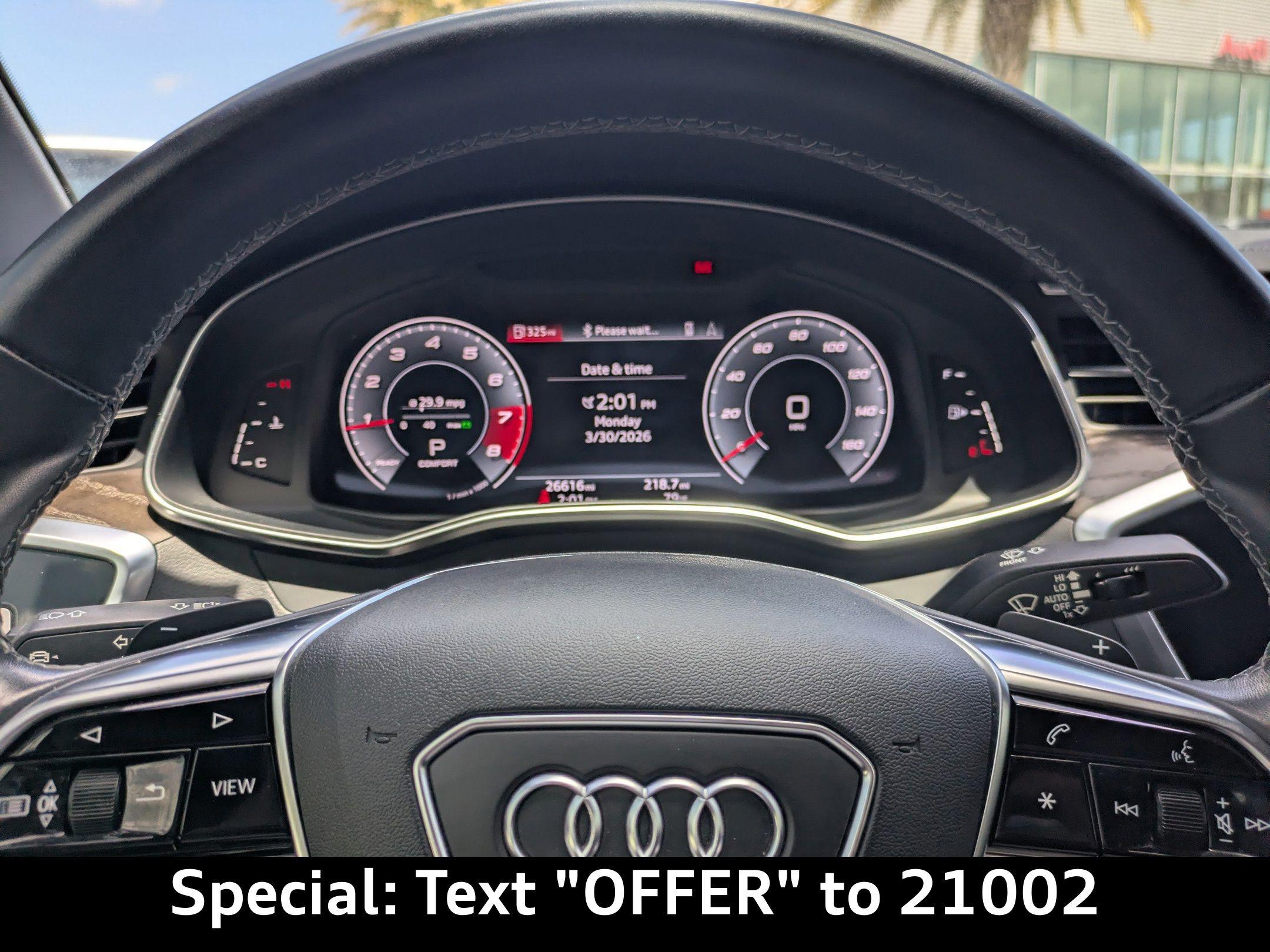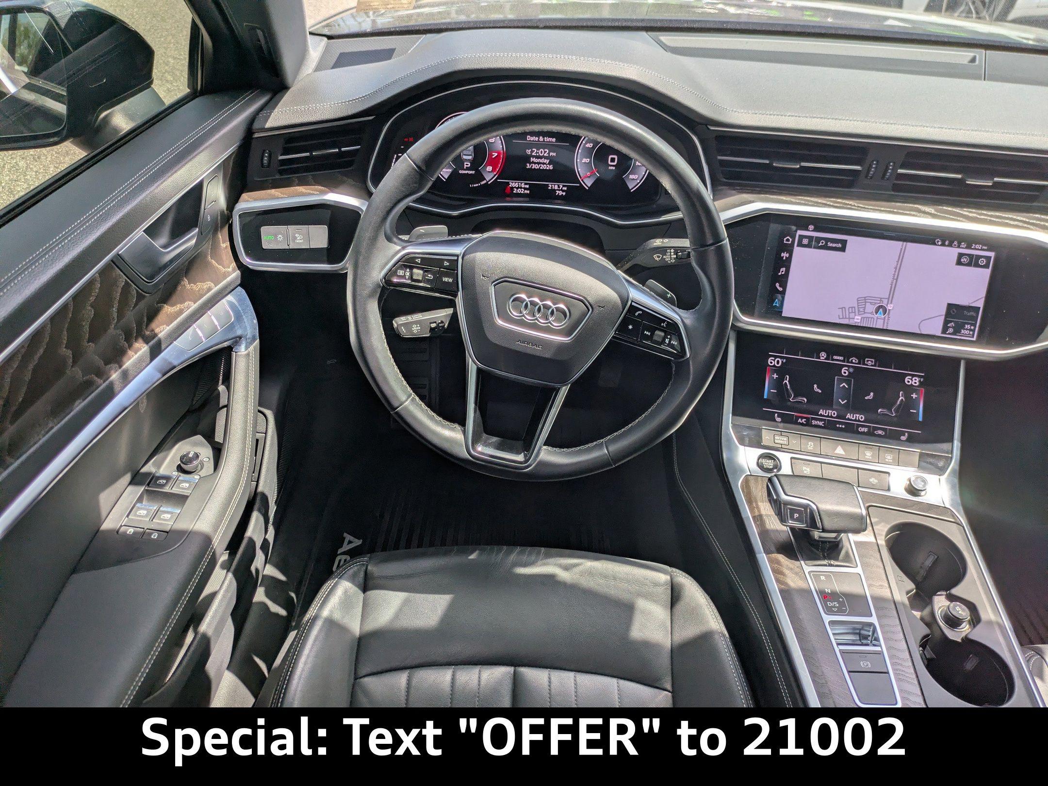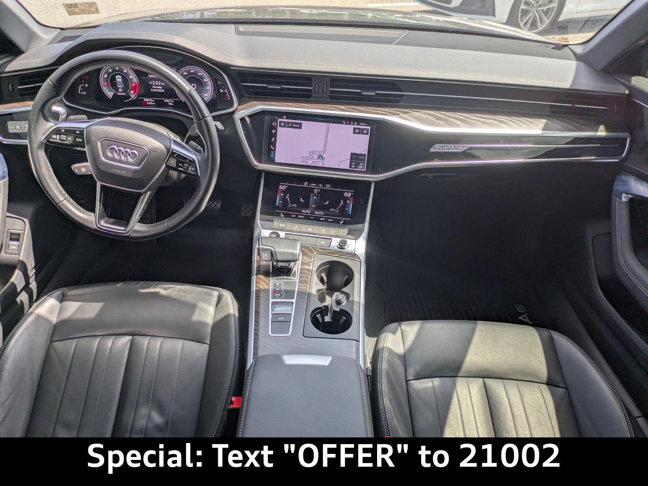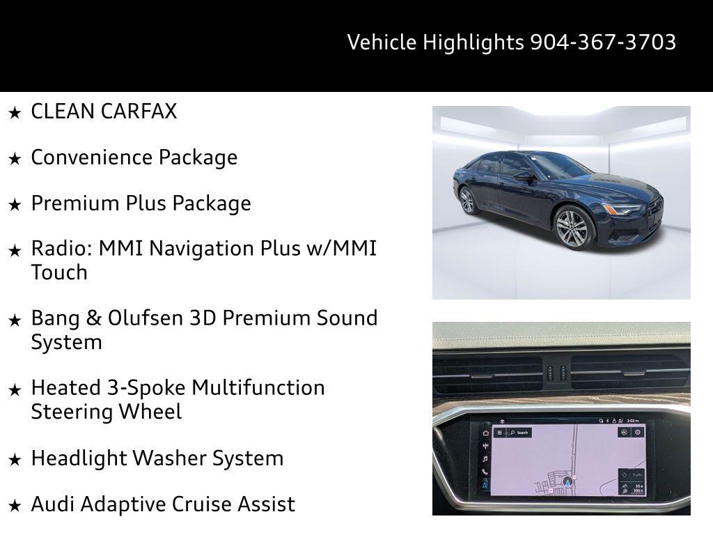 Imagine cruising down A1A in Neptune Beach, the ocean breeze whispering through your slightly opened window as you enjoy the smooth, quiet ride of your Audi A6. Or perhaps you're heading home to Nocatee after a long day, the advanced technology of the A6 making your commute a relaxing and enjoyable experience. This 2021 Audi A6 Sedan Premium Plus offers the perfect blend of luxury, performance, and technology for the discerning driver. The 2021 Audi A6 Sedan Premium Plus delivers a driving experience that is both refined and engaging. Its responsive 2L I-4 gasoline direct injection, DOHC, variable valve control, intercooled turbo, premium unleaded, engine with 248HP provides ample power for effortless acceleration and confident highway cruising. The 7-Speed Stronic Transmission ensures smooth and precise gear changes, whether you're navigating city streets or enjoying a spirited drive. With All-Wheel Drive, this A6 provides enhanced traction and stability in various weather conditions, offering peace of mind during those occasional Florida showers. The Audi drive select system allows you to tailor the driving experience to your preferences, with selectable modes for drivetrain and transmission. The auto stop-start engine helps to conserve fuel, achieving an EPA-estimated 23 city/31 highway MPG. Stay connected and entertained on every journey with the advanced technology features of this Audi A6. The MMI Navigation plus system with voice activation provides seamless navigation, guiding you to your destination with ease. The Audi smartphone interface with Apple CarPlay and Android Auto allows you to integrate your smartphone seamlessly with the car's infotainment system, accessing your favorite apps, music, and contacts. The Audi Phone Box w/Wireless Charging keeps your compatible smartphone charged and connected, while the Audi virtual cockpit digital/analog instrumentation display provides a customizable and informative display of vehicle information. Enjoy your favorite music with the premium sound system and stream audio wirelessly via Bluetooth. With 4 USB ports, you and your passengers can easily keep your devices charged on long trips. Step inside the 2021 Audi A6 Sedan Premium Plus and experience a world of comfort and sophistication. The Leather front seat upholstery provides a luxurious and comfortable seating surface, while the Heated Front Seats offer warmth and relaxation on chilly mornings. The Heated 3-Spoke Multifunction Steering Wheel adds a touch of luxury and comfort to your driving experience. The automatic climate control system ensures a comfortable cabin temperature for both front and rear passengers, with separate controls for personalized comfort. Enjoy the fresh air and natural light with the Power moonroof. The power driver and passenger seats offer customizable comfort with power reclining, lumbar support, cushion tilt, fore/aft control and height adjustable control. Memory settings for the door mirrors and steering wheel allow you to save your preferred driving position. Your safety is paramount, and the 2021 Audi A6 Sedan Premium Plus is equipped with a comprehensive suite of safety features to provide peace of mind on every drive. ABS brakes provide enhanced stopping power, while the Audi Active Lane Assist w/Emergency Assist helps you stay within your lane. The Audi Adaptive Cruise Assist maintains a safe following distance from the vehicle ahead, while the Blind spot Audi side assist blind spot warning alerts you to vehicles in your blind spot. The Top View Camera System w/Virtual 360 View provides a comprehensive view of your surroundings, making parking and maneuvering in tight spaces easier. The Forward collision warning Audi pre sense front forward collision mitigation system helps to prevent or mitigate collisions. The 2021 Audi A6 Sedan Premium Plus makes a statement with its elegant and athletic design. The Firmament Blue Metallic exterior paint finish exudes sophistication, while the 19' Bi-Color 5-Double-spoke-design Wheels add a touch of sporty flair. The Matrix-Design LED Headlights w/High Beam Assist provide exceptional visibility and a distinctive lighting signature. The power folding door mirrors offer convenience and protection. The first-row sunroof allows you to enjoy the open air and sunshine. Audi Jacksonville is conveniently located to serve customers from Palm Coast, San Jose, Ponte Vedra Beach, Nocatee, and Neptune Beach. We invite you to visit our showroom at 11401 Atlantic Blvd, Jacksonville, FL 32225 to experience the 2021 Audi A6 Sedan Premium Plus for yourself. Get Directions to Audi Jacksonville or Call us at (904) 367-3700 to schedule a test drive. You can also Value Your Trade or fill out a Credit Application online. We look forward to welcoming you to Audi Jacksonville! Build Codes: 98C | 98CSTR | 98CAPB | VRTPIT | AUDSDE | NONRD | TOPCAM | WPS | WPSLED | WPSBO | WPSHWS | AUDAST | CRUISE | WPSELP | 6NQ | 7TL | 8Y | STDEN | STDST | STDTM | STDTR | STDWL2021 Audi A6 Sedan Premium Plus 45 TFSI quattro S tronic: Experience Refined Performance