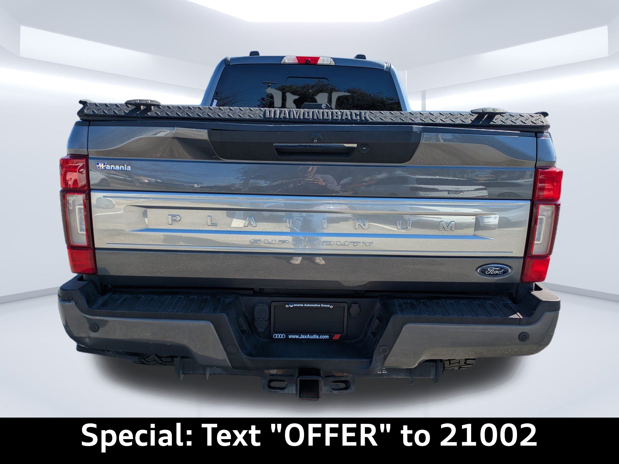For those who call Jacksonville home, where the sun meets the sea and the call of adventure is ever-present, the 2021 Ford F-250 Platinum is more than just a vehicle—it's your ticket to explore and conquer every corner of Florida's diverse landscapes, from the bustling urban centers to the serene Atlantic beaches. Under the hood, the F-250 Platinum roars with the Powerstroke 6.7L V-8 diesel engine, delivering a formidable 475 horsepower. This beast is paired with a 10-speed automatic transmission, ensuring smooth and responsive shifts as you navigate through Jacksonville's vibrant streets or head out for a weekend escape to the nearby state parks. The Tremor Off-Road Package and electronic-locking 3.55 axle ratio are designed for those who crave off-the-beaten-path adventures, providing unmatched traction and stability on rugged terrains. In the heart of this truck lies a suite of intelligent technologies. The SYNC 3 Communications & Entertainment System with Apple CarPlay and Android Auto integration ensures you're always connected, whether you're commuting downtown or embarking on a cross-state road trip. The Ford Co-Pilot360 suite, featuring Adaptive Cruise Control, Blind Spot Monitoring, and a 360-Degree Camera, offers peace of mind with every drive, making those family trips to Amelia Island or daily school runs safer and more enjoyable. Comfort meets luxury inside the F-250's spacious cabin. Sink into the black leather seats, with ventilated and massaging front seats that make long drives feel like a breeze. The dual-zone climate control and heated steering wheel ensure that every journey, whether it's a chilly morning commute or a sunny afternoon drive, is perfectly comfortable. With seating for five, including split-bench rear seats, there's room for everyone and everything, from kids' sports gear to camping essentials. The F-250 doesn't just perform; it impresses with its striking Carbonized Gray exterior and polished aluminum wheels. The Tough Bed spray-in bedliner and integrated bed step make loading and unloading a hassle-free experience, perfect for those spontaneous beach outings or home improvement projects. The High Capacity Trailer Tow Package and Pro Trailer Backup Assist transform towing into a simple task, whether you're hitching up a boat for a day on the water or a trailer for a weekend getaway. Don't miss out on making this versatile powerhouse a part of your life. Visit us at Audi Jacksonville to see it in person and discover why it's the perfect fit for your lifestyle. For more details or to schedule a test drive, Get Directions or call us at 904-367-3700. Ready to make a move? Start by exploring our Credit Application or find out the value of your current vehicle with our Value Your Trade tool. Embrace the freedom of the open road and the assurance of cutting-edge technology with the 2021 Ford F-250 Platinum—your perfect companion for every journey.Discover the 2021 Ford F-250 Platinum: Your Ultimate Adventure Partner