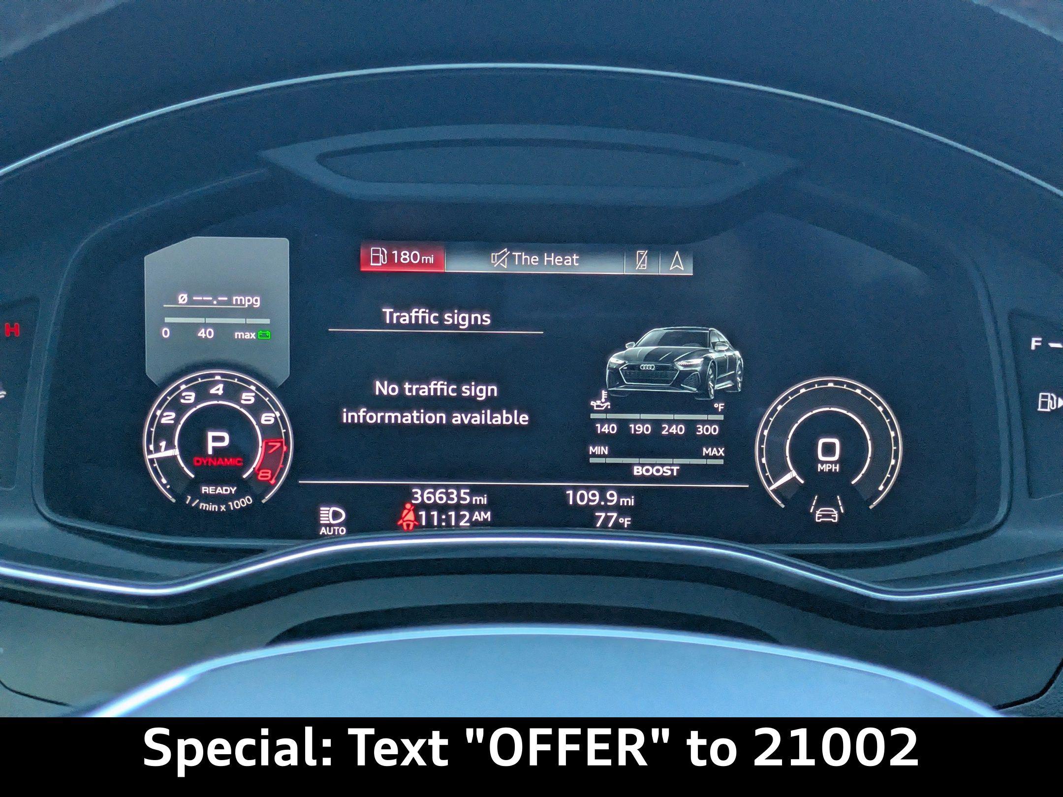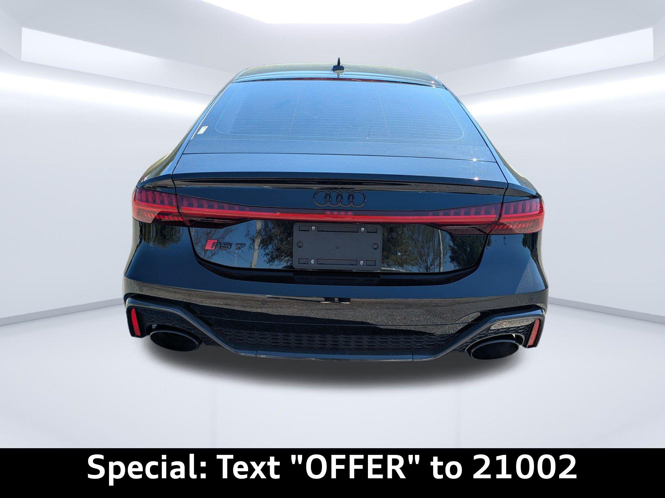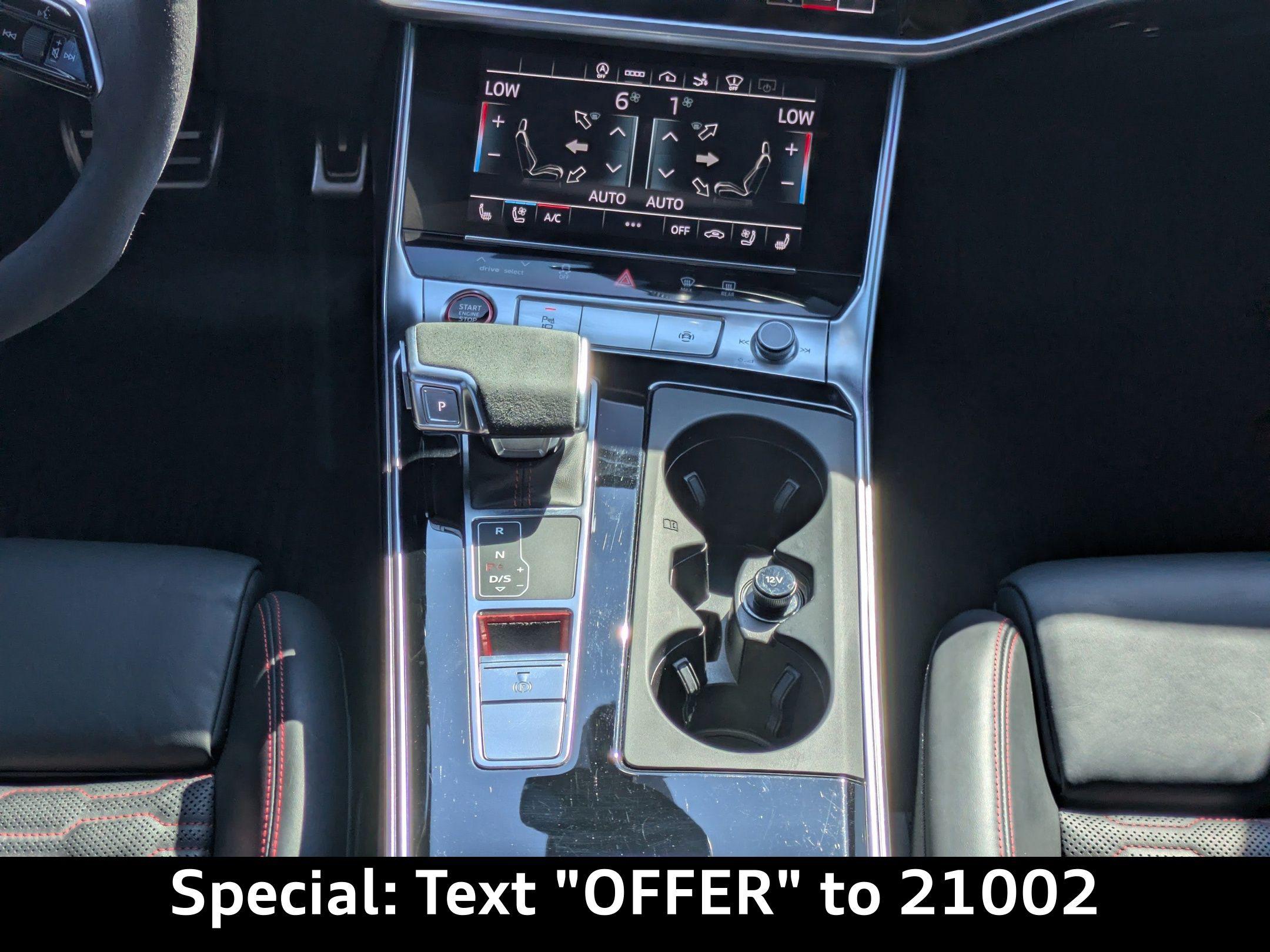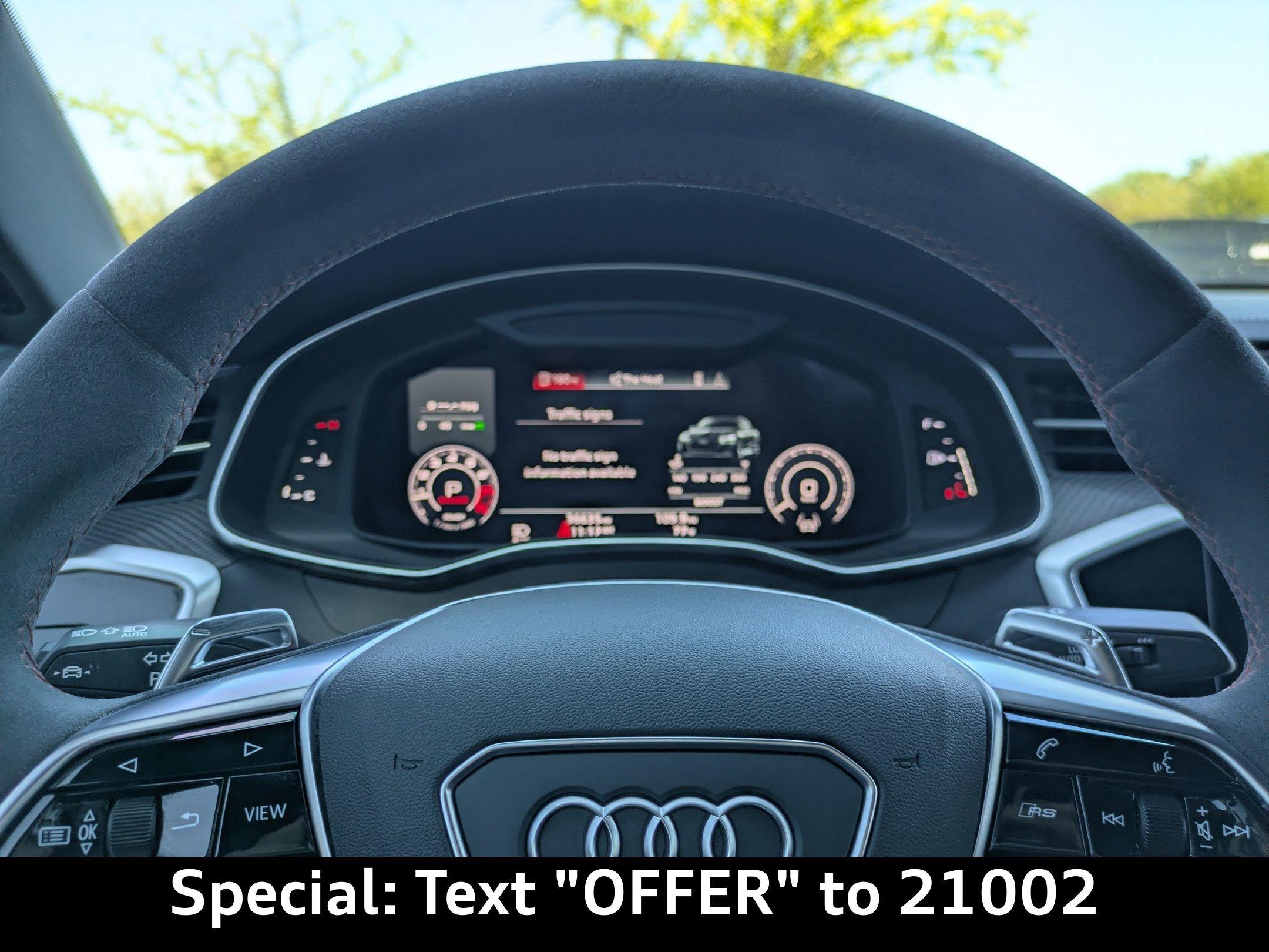 Imagine carving through the coastal roads near Ponte Vedra Beach, the sun glinting off the waves as the powerful engine of this Audi RS 7 Sportback responds to your every command. Whether it's a spirited drive after a round of golf or a stylish arrival at a beachfront restaurant, this machine elevates every experience. The heart of this 2022 Audi RS 7 Sportback is a potent 4L V-8 gasoline direct injection, DOHC, twin turbo engine with cylinder deactivation, delivering 591HP. Paired with an 8-speed automatic transmission and legendary All-Wheel Drive, this car offers exhilarating acceleration and confident handling in all conditions. The Audi drive select system allows you to tailor the car's performance to your preferences, whether you're seeking maximum thrills or comfortable cruising. With an estimated 15 city / 22 highway MPG, you can enjoy the performance without excessive trips to the pump. The advanced adaptive suspension and auto-leveling suspension ensure a smooth, controlled ride, whether you're navigating the scenic A1A or heading into town. And with the convenience of Fob engine controls with advanced key, starting your journey is effortless. Stay connected and informed with the advanced technology integrated into this RS 7 Sportback. The Audi virtual cockpit presents critical driving information on a 12.30-inch full gauge cluster screen, while the 10.1 inch primary display touchscreen provides intuitive control over the MMI Navigation plus integrated navigation system. Seamless smartphone integration is achieved through Audi smartphone interface (wireless Apple CarPlay/wired Android Auto), allowing you to access your favorite apps and music on the go. Enjoy hands-free communication with Bluetooth handsfree wireless device connectivity, and keep your devices charged using the convenient wireless device charging feature. You can control all of this via Steering wheel mounted audio controls, and see important information on the Head-Up Display. Step inside the RS 7 Sportback and experience a world of refined comfort and luxury. The Black/Red Valcona/Milano leather front seat upholstery provides a premium feel, while the heated front seats and ventilated front seats ensure optimal comfort in any weather. The dual-zone front climate control and dual-zone rear climate control allow you and your passengers to customize the temperature to your liking. The power driver seat and power passenger seat both offer extensive adjustability, including power lumbar support, ensuring a perfect driving position. The convenience of power door locks with 2-stage unlocking, power windows, and a power liftgate adds to the overall ease of use. The memory seat function stores your preferred settings for the driver's seat, mirrors, and steering wheel. The heated steering wheel will keep your hands warm on those chilly mornings. The Power Soft-Closing Doors offer an added touch of luxury. Your safety is paramount, and this RS 7 Sportback is equipped with a comprehensive suite of advanced safety features. 4-Wheel Disc Brakes with ABS provide confident stopping power, while Brake assist enhances braking performance in emergency situations. The Audi pre sense front forward collision mitigation system helps to prevent accidents, and lane departure warning alerts you if you unintentionally drift out of your lane. The rear camera and parking sensors make maneuvering in tight spaces easier and safer. The vehicle is equipped with dual front impact airbags, dual front side impact airbags, knee airbags, and overhead airbags to provide comprehensive protection in the event of a collision. The Blind spot Audi side assist blind spot warning will keep you safe on the highway. The Mythos Black Metallic exterior of this RS 7 Sportback exudes sophistication and understated aggression. The sleek lines and distinctive silhouette are further enhanced by the Black Optic Exterior Pkg and Carbon Exterior Mirror Housings. The First-row sunroof lets you enjoy the Florida sunshine, while the power rear spoiler adds a touch of sporty flair. The alloy wheels complement the overall design, and the rear wheel steering enhances agility and handling. The Bumpers are body-colored, and the Grille style is black with a metal-look surround. This 2022 Audi RS 7 Sportback is loaded with premium features for an exceptional driving experience: Audi Jacksonville is conveniently located to serve customers from Palm Coast, San Jose and Neptune Beach. Visit us at 11401 Atlantic Blvd, Jacksonville, FL 32225 to experience the 2022 Audi RS 7 Sportback for yourself. Call us at (904) 367-3700 to schedule a test drive or get a trade-in value for your current vehicle. You can also apply for credit online. We look forward to welcoming you to Audi Jacksonville! Get Directions to Audi Jacksonville. Build Codes: 98A | PRES | INTER | SIDEA | CRUISE | RECOG | 98E | EXTLP | HEAD | POWER | REARST | PEF | RSMATR | REDBLT | LTHR | RSTCH | ACSW | PEG | GSTCH | GRYBLT | RSMATGUnleash Your Potential: 2022 Audi RS 7 Sportback TFSI quattro Tiptronic