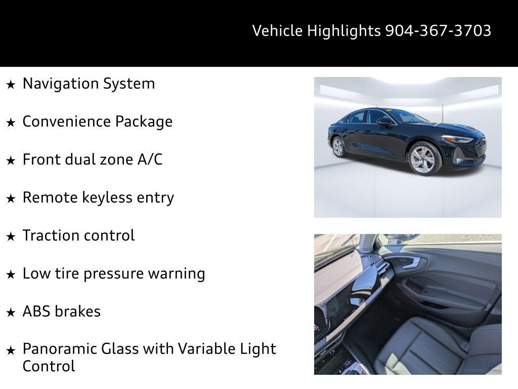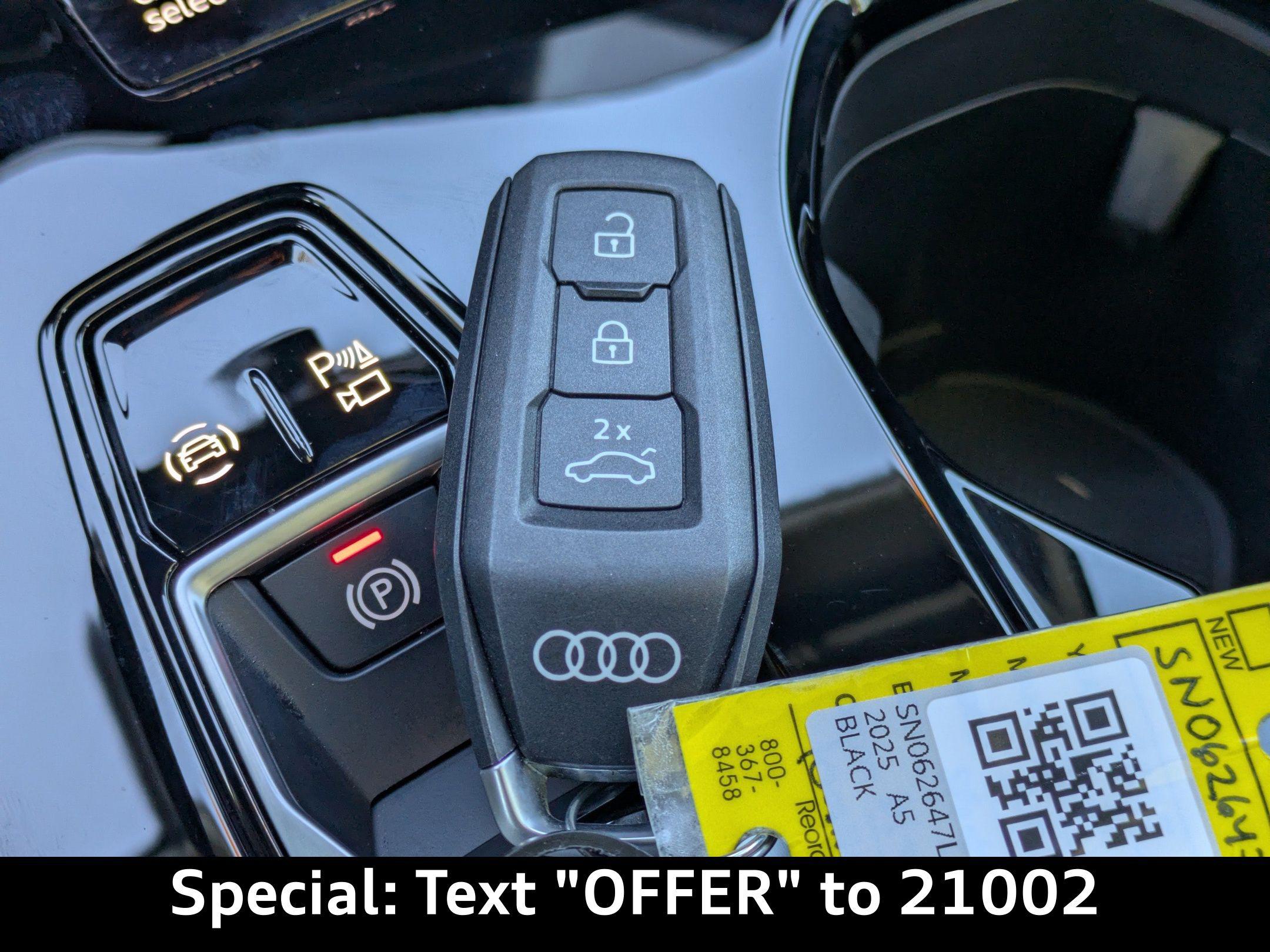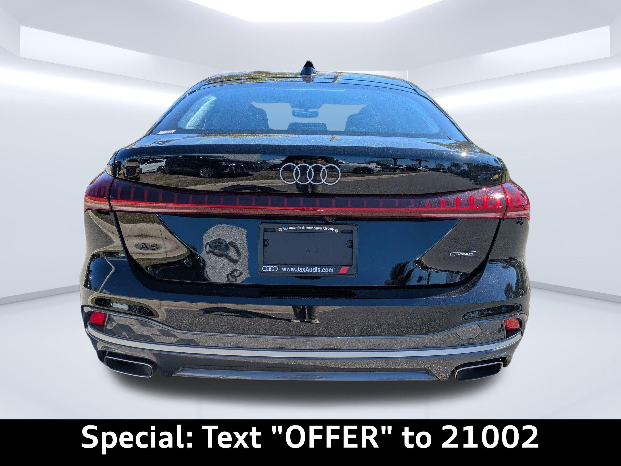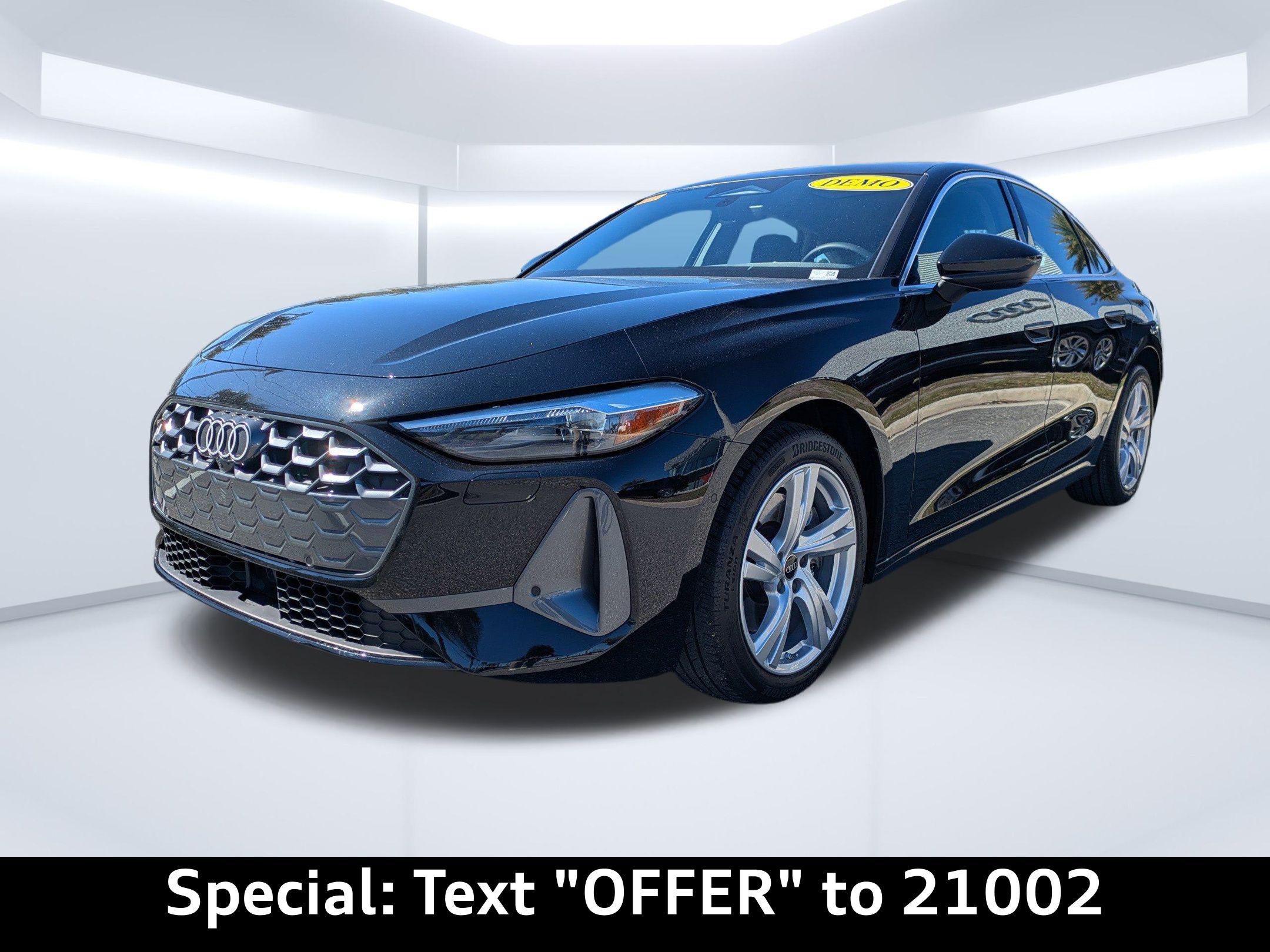 Imagine navigating the scenic A1A in Ponte Vedra Beach, the sun glinting off the ocean as you effortlessly merge onto the highway in this Mythos Black Metallic beauty. The 2025 Audi A5 Premium isn't just a car; it's a statement, a seamless blend of performance and sophistication designed for the discerning driver. Whether you're commuting from Nocatee to downtown Jacksonville or embarking on a weekend adventure, this hatchback redefines the driving experience. This meticulously maintained, factory-certified 2025 Audi All-new A5 Premium TFSI quattro S tronic, with only 7,810 miles, offers a unique opportunity to own a virtually new vehicle without the new-car premium. Experience the thrill of quattro All-Wheel Drive, the convenience of advanced technology, and the unparalleled comfort of a meticulously crafted interior. Prepare to be captivated by its dynamic performance and refined elegance. This Audi A5 is more than transportation; it's an extension of your lifestyle. The All-new A5 Premium TFSI quattro S tronic delivers a driving experience that's both exhilarating and refined, perfectly suited for navigating Jacksonville's diverse landscape. Its 2.0L I-4 DOHC turbocharged engine provides a responsive 268 horsepower, ensuring confident acceleration whether you're merging onto I-95 or enjoying a spirited drive along A1A. The 7-speed automatic S tronic transmission offers smooth and precise gear changes, while the quattro all-wheel drive system provides exceptional grip and stability in various conditions. Whether its a rainy afternoon commute from Nocatee or a weekend trip up to Ponte Vedra Beach, you'll appreciate the surefootedness of Audi's legendary AWD. Audi drive select allows you to tailor the vehicle's performance to your preferences, with selectable modes for optimized efficiency, sporty handling, or comfortable cruising. The independent front and rear suspension systems provide a balanced ride, absorbing bumps and imperfections while maintaining precise control. The engine oil cooler ensures optimal performance even during demanding driving conditions. The A5's performance is not just about speed; its about confidence and control. The advanced key with push-button start adds a touch of convenience to every journey. The auto stop-start engine technology enhances fuel efficiency, making it a responsible choice for daily driving. This hatchback is engineered to elevate your driving experience, every single time. Stay connected and entertained in the all-new A5, designed for the modern Jacksonville driver. The centerpiece is the expansive 14.5-inch touchscreen display, seamlessly integrating with the Audi virtual cockpit plus, offering a customizable 11.9-inch digital instrumentation display. Whether you're navigating to a tee time in Ponte Vedra Beach or streaming your favorite podcast during your commute, the intuitive interface keeps you informed and engaged. Effortlessly integrate your smartphone with wireless Apple CarPlay and Android Auto, ensuring access to your favorite apps and contacts. The integrated MMI Navigation plus system responds to voice commands, guiding you to your destination with ease. For those longer family trips, the A5 offers multiple USB ports to keep everyone charged, along with convenient wireless device charging for compatible smartphones. Enjoy crisp, clear audio through the premium sound system, controllable via the steering wheel or voice commands using Amazon Alexa integration. Plus, with Bluetooth wireless audio streaming, your favorite playlists are always at your fingertips. The A5 prioritizes connectivity, making every drive a connected and enjoyable experience. Sink into the embrace of the All-new A5's meticulously crafted interior, designed for both driver and passengers. The Leather Seating Surfaces offer a premium feel, while the Heated Front Bucket Seats and Heated Steering Wheel provide comforting warmth on those cooler mornings heading into Jacksonville. The tri-zone climate control ensures everyone stays comfortable, whether you're navigating the afternoon heat on the way back from Ponte Vedra Beach or enjoying a cool evening drive. With the Power Liftgate, loading up after a day at the beach is a breeze. Enjoy the convenience of the memory settings for the driver's seat and door mirrors, ensuring your preferred driving position is always just a button away. The 40-20-40 folding rear seats offer flexibility for cargo, whether you're hauling golf clubs or weekend project supplies from Palm Coast. The interior is further enhanced with Piano black and aluminum accents, creating a sophisticated atmosphere for every journey. The All-new A5 prioritizes your peace of mind with a comprehensive suite of safety and driver-assistance technologies. Navigate Jacksonville’s busy streets with confidence, knowing features like Audi pre sense with Forward Collision Warning and Automatic Emergency Braking are actively monitoring your surroundings. Maneuvering in areas like Nocatee is made easier with the Top View Camera System and front and rear Parking Sensors. Audi side assist provides Blind Spot Monitoring, adding an extra layer of security when merging onto I-95. Lane Departure Warning helps keep you centered, while Adaptive Cruise Control with Traffic Jam Assist makes longer drives to Palm Coast more relaxed. The A5 boasts eight airbags, including front, side, overhead, and knee airbags, plus ABS brakes and Brake Assist, ensuring comprehensive protection for you and your passengers. The All-new A5 presents a striking silhouette, finished in sophisticated Mythos Black Metallic paint that complements its athletic stance. The Quattro All-Wheel Drive system ensures confident handling, whether you're navigating the scenic A1A near Ponte Vedra Beach or heading downtown. The 19-inch alloy wheels with machined accents add a touch of modern flair, while the black grille with metal-look surround exudes confidence. LED headlights not only illuminate the roa
