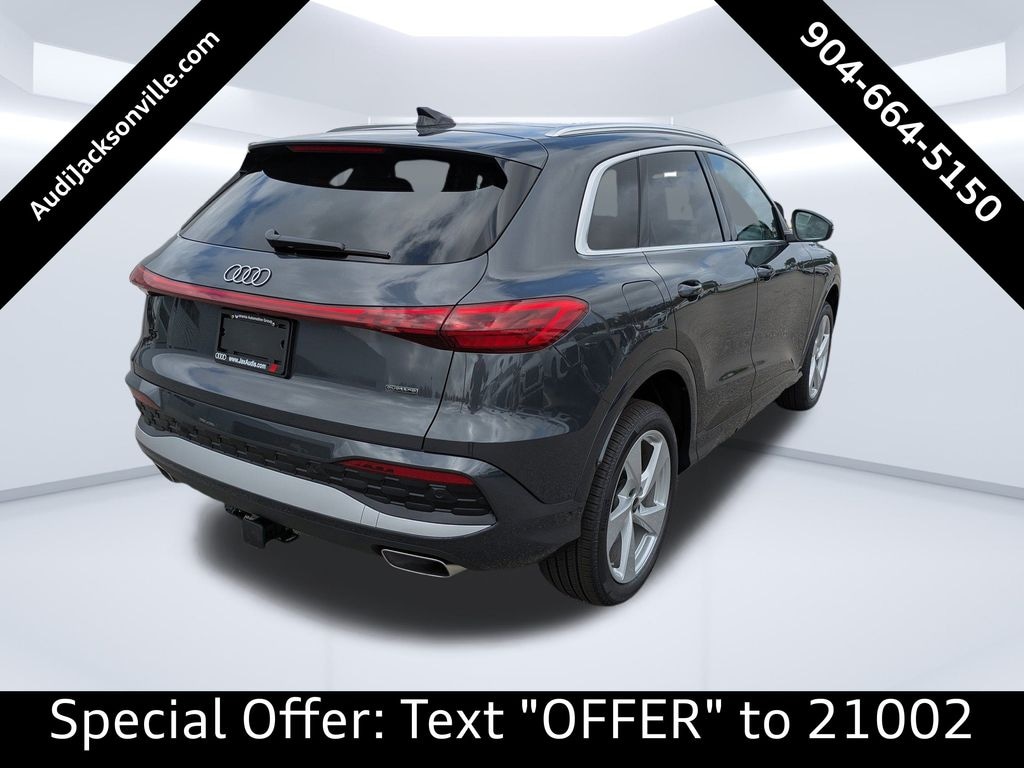 Tambora Gray Metallic 2025 Audi All-new Q5 2.0T Premium Plus quattro quattro 7-Speed Automatic S tronic 2.0L 4-Cylinder TFSI 10 Speakers, 4-Wheel Disc Brakes, ABS brakes, Air Conditioning, Alloy wheels, AM/FM radio: SiriusXM w/ 360L, Auto High-beam Headlights, Auto tilt-away steering wheel, Auto-dimming door mirrors, Auto-dimming Rear-View mirror, Automatic temperature control, Brake assist, Bumpers: body-color, Compass, Delay-off headlights, Driver door bin, Driver vanity mirror, Dual front impact airbags, Dual front side impact airbags, Electronic Stability Control, Emergency communication system: Audi connect CARE, Exterior Parking Camera Rear, Four wheel independent suspension, Front anti-roll bar, Front Bucket Seats, Front Center Armrest, Front dual zone A/C, Front fog lights, Front reading lights, Garage door transmitter: HomeLink, Genuine wood console insert, Genuine wood dashboard insert, Genuine wood door panel insert, Heated door mirrors, Heated Front Bucket Seats, Heated front seats, Illuminated entry, Leather Seating Surfaces, Leather steering wheel, Low tire pressure warning, Memory seat, Navigation system: Audi Navigation Plus, Occupant sensing airbag, Outside temperature display, Overhead airbag, Overhead console, Panic alarm, Passenger door bin, Passenger vanity mirror, Power door mirrors, Power driver seat, Power Liftgate, Power passenger seat, Power steering, Power windows, Radio data system, Radio: MMI Navigation Plus, Rain sensing wipers, Rear air conditioning, Rear anti-roll bar, Rear fog lights, Rear reading lights, Rear seat center armrest, Rear window defroster, Rear window wiper, Remote keyless entry, Roof rack, Security system, Speed control, Speed-sensing steering, Speed-Sensitive Wipers, Split folding rear seat, Spoiler, Steering wheel mounted audio controls, Tachometer, Telescoping steering wheel, Tilt steering wheel, Traction control, Trip computer, Turn signal indicator mirrors, Variably intermittent wipers, Wheels: 18'' 5-Arm-Twist Design, CLEAN CARFAX.Recent Arrival! 22/30 City/Highway MPG