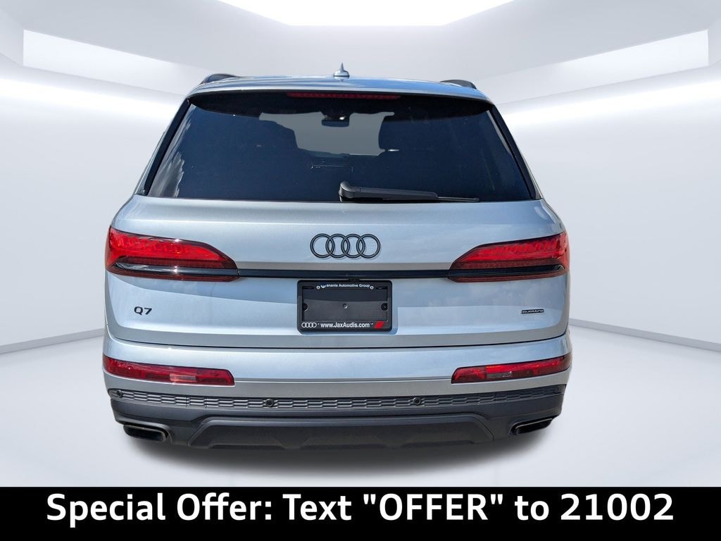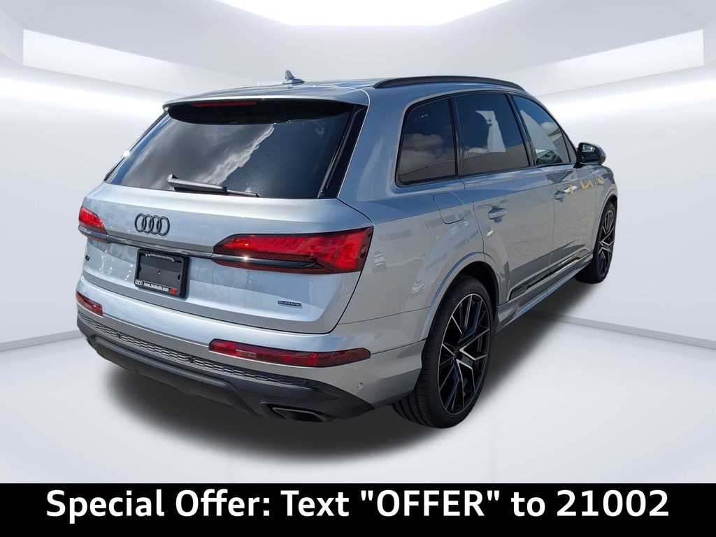 Satellite Silver Metallic 2025 Audi Q7 55 TFSI quattro Premium Plus quattro 8-Speed Automatic with Tiptronic 3.0L TFSI ABS brakes, Alloy wheels, Anthracite Gray Audi Rings, Audi Beam Rings, Audi Guard All-Weather Mats, Bang & Olufsen Premium Sound System w/3D Sound, Black Door Blades, Black Exterior Trim, Black Grille, Black Optic Package, Black Roof Rails, Black Window Surrounds, Comfort Adaptive Air Suspension, Compass, Control Buttons in Gloss Black w/Haptic Feedback, Convenience Package, Dark Chrome Exhaust Tips, Dual-Pane Acoustic Glass for Side Windows, Electronic Stability Control, Executive Plus Package, Four-Zone Automatic Climate Control, Front dual zone A/C, Front Seats w/Ventilation, Heated door mirrors, Heated Front Bucket Seats, Heated front seats, Heated Rear Seats, Heated Steering Wheel, Illuminated Door Sills, Illuminated entry, LED Interior Lighting Package Plus, Low tire pressure warning, Power Liftgate, Power Soft-Closing Doors, Premium Plus Package, Privacy Trunk Cover, Rear Door/Side Windows & Tailgate Sunshades, Remote keyless entry, Top View Camera System, Traction control, Traffic Sign Recognition, Wheels: 22'' 5-V-Spoke Star Design.