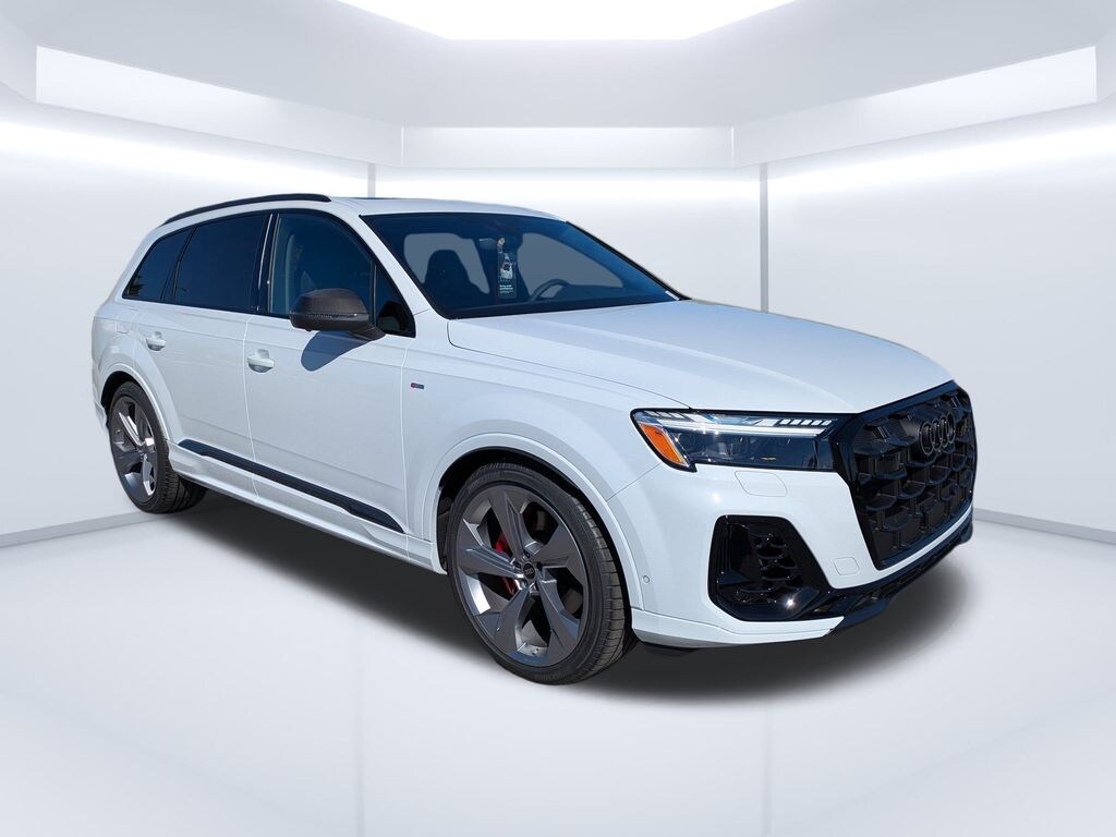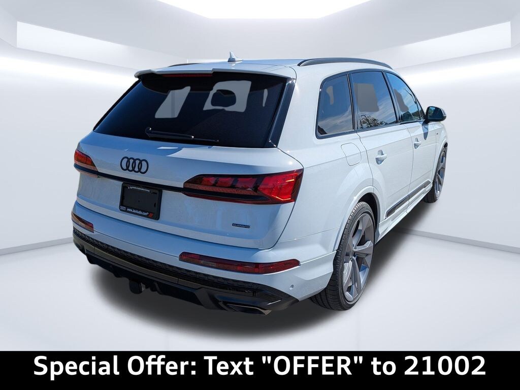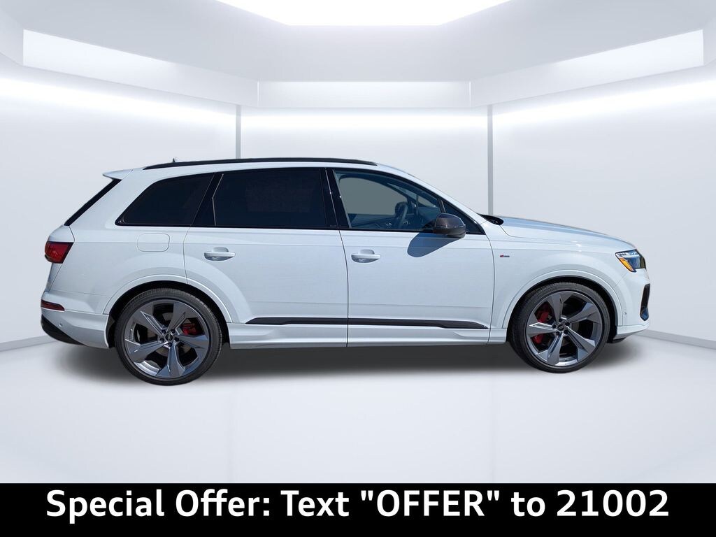 2026 Glacier White metallic Audi Q7 55 TFSI quattro PrestigeBlack interior w/ Red stitching Prestige package Adaptive air suspension & All-wheel steeringBang & Olufsen Premium sound system with 3D soundDual-pane acoustic glass for side windowsFour-zone automatic climate controlHead-up displayHeated steering wheel and rear seatsIlluminated door sills & Power soft-closing doorsIndividual contour front seatsLED interior lighting plus packageOLED taillightsPower lumbar and memory for front passenger seatRemote park assist plus & Intersection assistSunshades for rear door side windows and tailgateTop view camera systemValcona/Cricket leather interiorVentilation and massage function for front seatsSport plus packageAudi Sport Crimson Red stitching packageAnthracite Audi ringsBlack optic exterior trim and roof railsCarbon twill matte inlaysDark chrome exhaust tipsExtended leather packageModel badge deleteRed brake calipersS line exteriorSport adaptive air suspensionSport seats plus, front, with ventilation and massageStainless steel pedal capsValcona leather interiorVision packageHD Matrix-design LED headlights with Audi laser lightHeadlight washer systemNight vision assistCarbon packageCarbon fiber exterior mirror housings & side sill inlays22'' 5-arm-edge design wheels with summer tiresTrailer hitchAudi beam ''rings''Audi Guard protection kitCargo cover