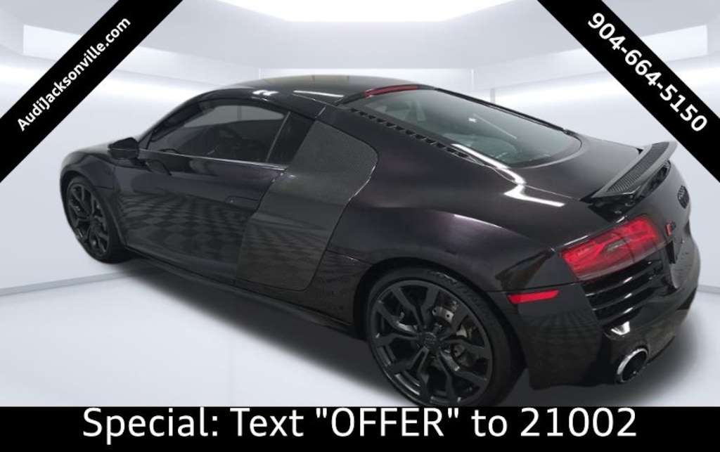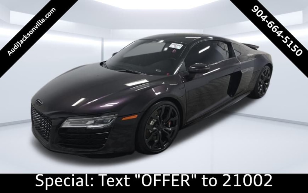 Used For Sale Near Me. 2014 Audi R8 Recent Arrival! Panther Black Crystal Effect/Red Roof 5.2 quattro quattro 7-Speed Automatic S tronic 5.2L V10 FSI DOHC Black w/Fine Nappa Leather Seat Trim, Audi Exclusive Black Optic Package, Full Leather Package, High-Gloss Black Round Exhaust Pipes, Wheels: 19" 5-Double Spoke Titanium Design, 12 Speakers, 19" 10-Spoke Y Design Forged Aluminum Wheels, 3-Step Heated Sport Seats, 4-Wheel Disc Brakes, ABS brakes, Adaptive suspension, Air Conditioning, Alloy wheels, AM/FM radio, Auto-dimming door mirrors, Auto-dimming Rear-View mirror, Automatic temperature control, Bang & Olufsen Sound System, Brake assist, Bumpers: body-color, CD player, Compass, Delay-off headlights, Driver door bin, Driver vanity mirror, Dual front impact airbags, Dual front side impact airbags, DVD-Audio, Electronic Stability Control, Exterior Parking Camera Rear, Fine Nappa Leather Seat Trim, Four wheel independent suspension, Front anti-roll bar, Front Bucket Seats, Front reading lights, Fully automatic headlights, Garage door transmitter: HomeLink, Heated door mirrors, Heated front seats, Illuminated entry, Knee airbag, Low tire pressure warning, Navigation System, Occupant sensing airbag, Outside temperature display, Panic alarm, Passenger door bin, Passenger vanity mirror, Power door mirrors, Power driver seat, Power passenger seat, Power steering, Power windows, Radio data system, Radio: AM/FM/SIRIUS/6CD Changer w/Navigation, Rain sensing wipers, Rear anti-roll bar, Rear window defroster, Remote CD player, Remote keyless entry, Security system, Speed control, Speed-sensing steering, Speed-Sensitive Wipers, Spoiler, Sport steering wheel, Steering wheel mounted audio controls, Tachometer, Telescoping steering wheel, Tilt steering wheel, Traction control, Trip computer, Turn signal indicator mirrors, Variably intermittent wipers, Voltmeter, CLEAN CARFAX, Black w/Fine Nappa Leather Seat Trim, Audi Exclusive Black Optic Package, Full Leather Package, High-Gloss Black Round Exhaust Pipes, Wheels: 19" 5-Double Spoke Titanium Design.