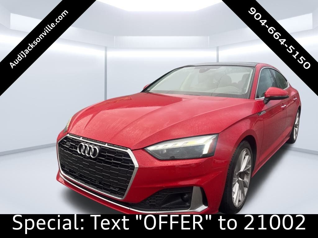 Used For Sale Near Me. 2022 Audi A5 Sportback Recent Arrival! Tango Red Premium Plus quattro quattro 7-Speed Automatic S tronic Certified. 2.0L 4-Cylinder TFSI Audi Certified pre-owned Certified, 2 Rear USB Charge Ports, Adaptive Cruise Control w/Traffic Jam Assist, Alarm System w/Motion Sensors, Audi Active Lane Assist, Audi Advanced Key, Audi Phone Box, Audi Side Assist w/Pre Sense Rear, Audi Virtual Cockpit Plus, Auto-Dimming Exterior Mirrors w/Memory, Convenience Package, Driver Seat Memory, Hands-On Detection Steering Wheel, Heated Steering Wheel, Leatherette Covered Center Console & Door Armrests, Matrix-Design LED Headlights, MMI Navigation Plus, Navigation Package, Parking System Plus (Front/Rear Acoustic Sensors), Power Folding Exterior Mirrors, Premium Plus, SiriusXM All Access Service, Top View Camera System, 10 Speakers, 4-Wheel Disc Brakes, ABS brakes, Air Conditioning, Alloy wheels, AM/FM radio, Anti-whiplash front head restraints, Audi Guard All-Weather Mats, Auto High-beam Headlights, Auto-dimming Rear-View mirror, Automatic temperature control, Bang & Olufsen Sound System w/3D Sound, Brake assist, Bumpers: body-color, Compass, Delay-off headlights, Driver door bin, Driver vanity mirror, Dual front impact airbags, Dual front side impact airbags, Electronic Stability Control, Emergency communication system: Audi connect CARE, Exterior Parking Camera Rear, Four wheel independent suspension, Front anti-roll bar, Front Bucket Seats, Front Center Armrest, Front dual zone A/C, Front fog lights, Front reading lights, Garage door transmitter: HomeLink, Genuine wood console insert, Genuine wood dashboard insert, Genuine wood door panel insert, Heated door mirrors, Heated Front Seats, Heated front seats, Illuminated entry, Integrated Toll Module Delete, Knee airbag, Leather Seating Surfaces, Leather Shift Knob, Leather steering wheel, Low tire pressure warning, Occupant sensing airbag, Outside temperature display, Overhead airbag, Overhead console, Panic alarm, Passenger door bin, Passenger vanity mirror, Power adjustable front head restraints, Power door mirrors, Power driver seat, Power Liftgate, Power moonroof, Power passenger seat, Power steering, Power windows, Radio data system, Radio: Audi Sound System, Rain sensing wipers, Rear air conditioning, Rear anti-roll bar, Rear reading lights, Rear seat center armrest, Rear window defroster, Remote keyless entry, Rings Audi Beam, Semiconductor Shortage Credit, Speed control, Speed-sensing steering, Speed-Sensitive Wipers, Split folding rear seat, Steering wheel mounted audio controls, Tachometer, Telescoping steering wheel, Tilt steering wheel, Traction control, Trip computer, Turn signal indicator mirrors, Variably intermittent wipers, Wheels: 18" 5-V-Spoke-Y Design, CLEAN CARFAX, 2 Rear USB Charge Ports, Adaptive Cruise Control w/Traffic Jam Assist, Alarm System w/Motion Sensors, Audi Active Lane Assist, Audi Advanced Key, Audi Phone Box, Audi Side Assist w/Pre Sense Rear, Audi Virtual Cockpit Plus, Auto-Dimming Exterior Mirrors w/Memory, Convenience Package, Driver Seat Memory, Hands-On Detection Steering Wheel, Heated Steering Wheel, Leatherette Covered Center Console & Door Armrests, Matrix-Design LED Headlights, MMI Navigation Plus, Navigation Package, Parking System Plus (Front/Rear Acoustic Sensors), Power Folding Exterior Mirrors, Premium Plus, SiriusXM All Access Service, Top View Camera System.
