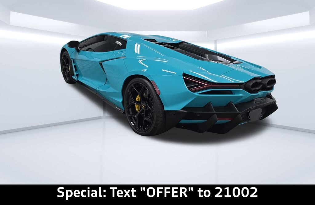 Finished in Blu Glauco Metallic, the Revuelto's striking exterior is complemented by 21-inch front and 22-inch rear Altanero Shiny Black Wheels and a Carbon Fiber Roof Panel. The Power Rear Spoiler and Giallo CCB Brake Calipers add a touch of sporty elegance, ensuring you turn heads wherever you go.